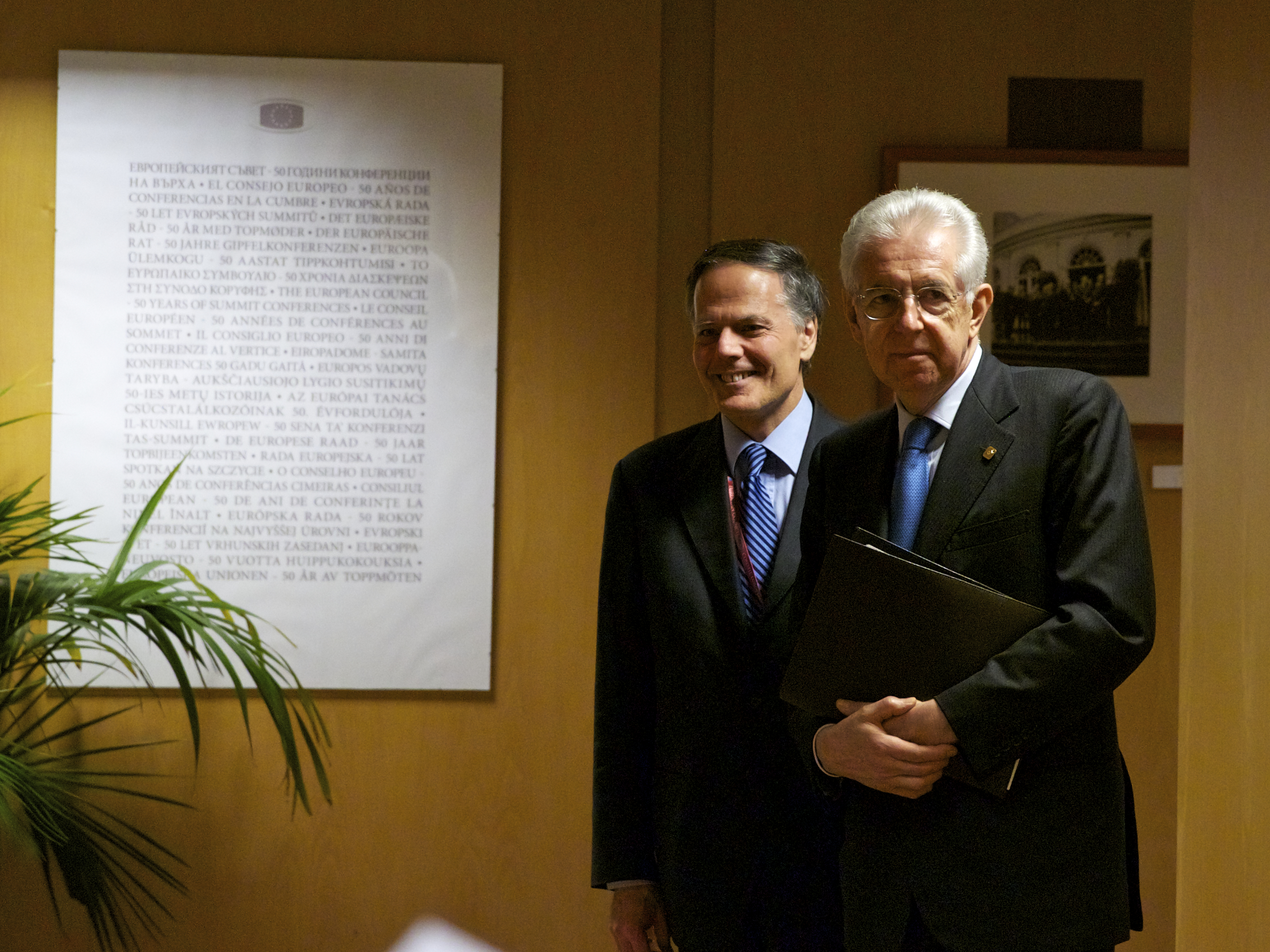 22:22 Monti incontra il Presidente del parlamento europeo, Martin Schulz per un colloquio a due.