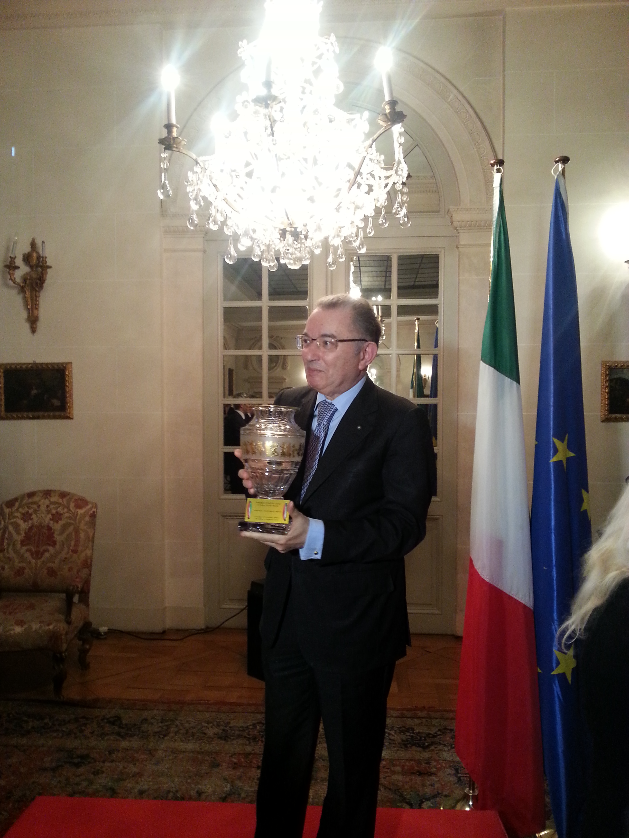 Il premio istituito lo scorso anno dal Gruppo di Iniziativa Italiana di Bruxelles (GII)– il cui presidente onorario è l’ambasciatore d’Italia Roberto Bettarini – è stato consegnato assegnato questa sera con una cerimonia che si è tenuta presso la Residenza dell’ambasciatore, il quale ha spiegato la scelta definendo Squinzi “L’archetipo positivo dell’imprenditore italiano” poiché “capace di unire alle doti di innovatore e manager una visione sistemica che abbraccia la politica industriale, l’attenzione per il sociale e l’impegno nella costruzione di un’Europa sempre più coesa e forte”.