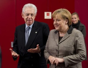 Monti ha parlato molto del tema centrale di questo summit, quella vigilanza bancaria unica, tanto voluta dall’Italia (e tanto poco dalla Germania) che è stata approvata un po’ annacquata, con la piena entrata in vigore slittata al marzo 2014 e il ruolo di controllo limitato agli istituti con attività superiori alla soglia dei 30 miliardi di euro, che rappresentano il 20% del Pil del Paese. Un compromesso fatto per salvare il ruolo di controllo della Bundesbank sulle piccole banche dei land tedeschi. “La responsabilità primaria della Bce riguarderà 150 gruppi bancari, rappresentativi dell’85% delle attività bancarie dell’area euro” ha spiegato il presidente del Consiglio affermando che “In Italia sono una quindicina le banche con attivi superiori alla soglia dei 30 miliardi di euro, e rappresentano il 70% delle attività complessive del sistema nazionale”. Ma pur riconoscendo tutti questi risultati come positivi, il primo ministro ci tiene ad apparire sempre uno coi piedi per terra: “Nessuno si illude che la crisi sia andata via per sempre”.