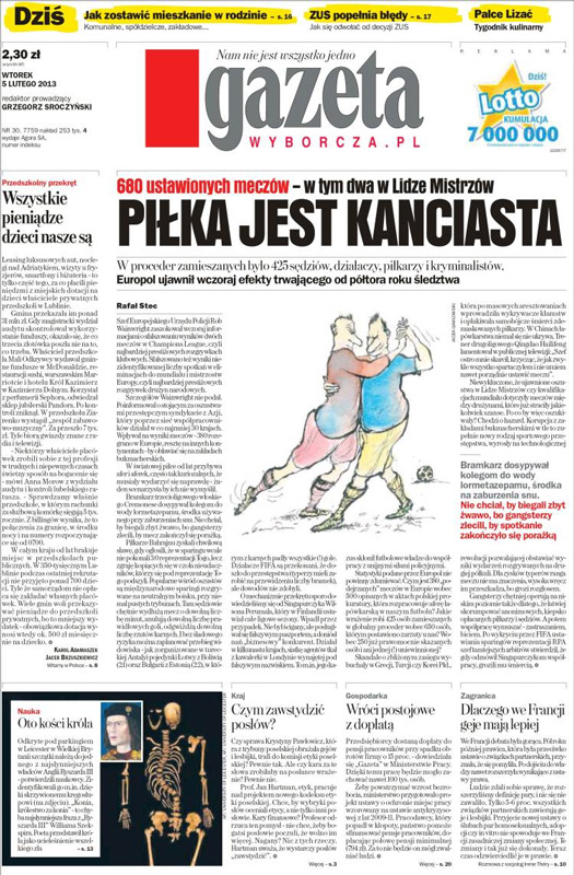 Un’indagine di Europol ha rivelato che 680 partite di calcio – incluse due di Champions League e diverse gare di qualificazione per i Campionati europei e mondiali – sono state truccate da una rete criminale. “La corruzione, protetta anche da un’organizzazione di bookmaker, è uno crimine sportivo del tutto nuovo, nato dalla rivoluzione tecnologica che permette di scommettere su eventi sportivi in corso in un altro emisfero”, conclude il quotidiano polacco Gazeta Wyborcza.
