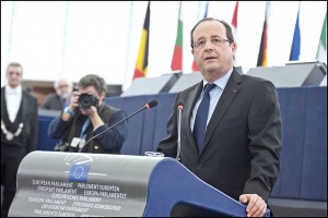François Hollande si candida a essere il portavoce del Parlamento Ue al prossimo Consiglio europeo. Nel suo applauditissimo intervento nell’Aula di Strasburgo, il presidente francese, che è arrivato con l’ormai abituale nodo della cravatta storta, si è schierato contro i tagli al Bilancio pluriennale affermando: “Risparmi sì, indebolire l’economia europea no”. Per raggiungere questo obiettivo giovedì e venerdì bisognerà “far ragionare, chi vuole amputare il bilancio europeo”.
