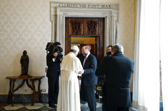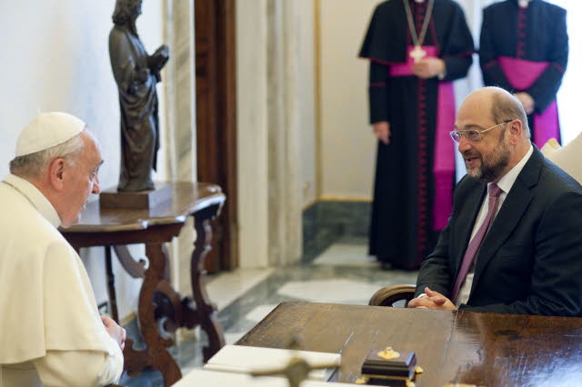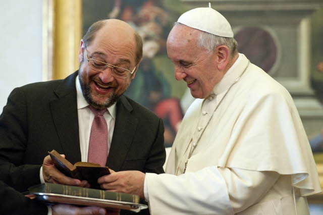 Tra i due un incontro di 30 minuti durante cui Bergoglio, fa poi sapere Schulz in una nota, lo ha “ispirato e stimolato”. Come d’abitudine c’è stato il rituale scambio dei doni, il presidente ha regalato al Pontefice un libretto di preghiere domenicali e un volume del duomo di Aquisgrana. Il Vescovo di Roma ha risposto con una penna realizzata dai Musei Vaticani e che ripropone una delle colonne del baldacchino del Bernini che sormonta l’altare della Confessione. Sul tavolo diversi temi cari al Papa come povertà e disoccupazione giovanile. Ma a pochi giorni dalla tragedia di Lampedusa il pontefice, figlio di emigranti italiani in Argentina, ha voluto dedicare gran parte del colloquio al tema dell’immigrazione e ha chiesto all’Europa una maggiore attenzione al riguardo.