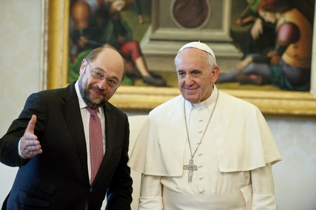 Hanno parlato a lungo, insieme hanno sfogliato un album di foto della visita di Papa Wojtyla al Parlamento europeo, avvenuta esattamente 25 anni fa. Poi il Presidente Martin Schulz ha formalizzato la richiesta anche al nuovo pontefice: Papa Francesco venga a Strasburgo. Con quest’invito fatto, secondo il portavoce vaticano, Federico Lombardi “con molto cuore”, si è conclusa la visita di Schulz in Vaticano. L’invito, fa sapere il portavoce, “sarà preso con grande attenzione” ma sui possibili tempi ancora nulla è dato sapere, se non che si potrebbero allungare parecchio a causa dei molti viaggi all’estero già in agenda per Papa Francesco.