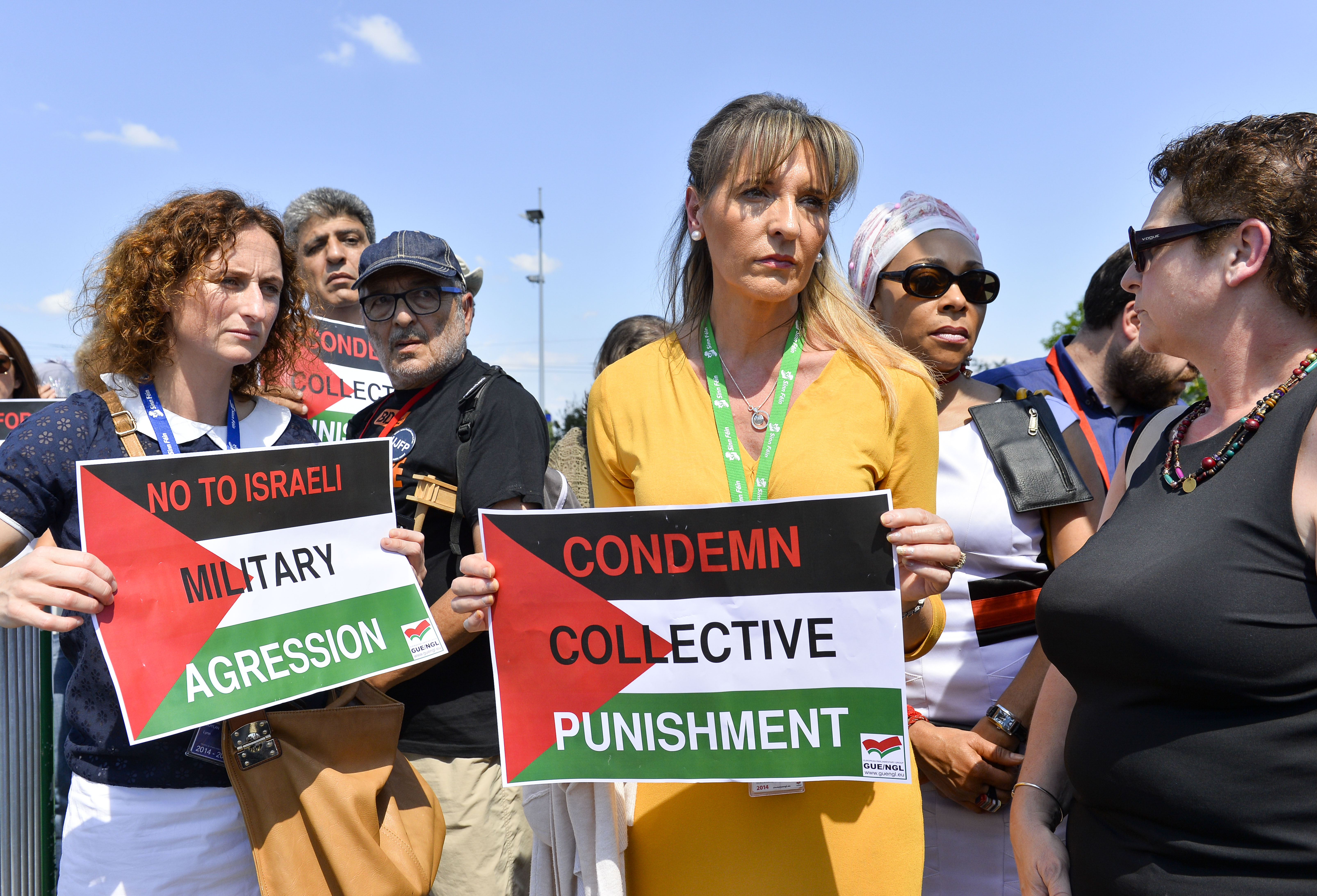 Mentre l’Aula discuteva centinaia di persona hanno manifestato all’esterno del palazzo del Parlamento di Strasburgo con bandiere palestinesi e striscioni che chiedevano la fine dei bombardamenti israeliani e dell’occupazione. Alla manifestazione hanno partecipato anche gli esponenti della Gue che anche in Aula hanno poi esposto cartelloni con la scritta: “Basta con l’occupazione della Palestina”. La Siistra Unita però non ha appoggiati il testo che, per l’irlandese Martina Anderson, rappresenta “un tentativo per evitare di criticare Israele e ignora le cause del conflitto”, mentre avrebbe dovuto sottolineare che le azioni di Tel Aviv “violano il diritto internazionale”.