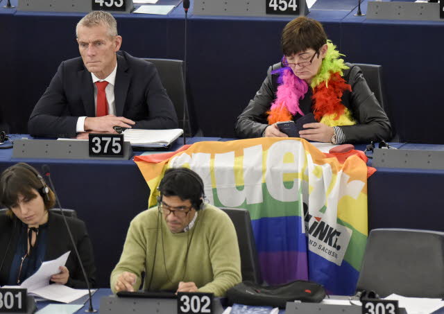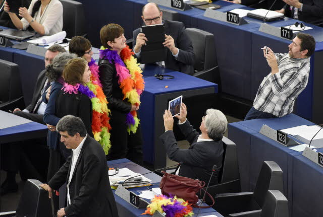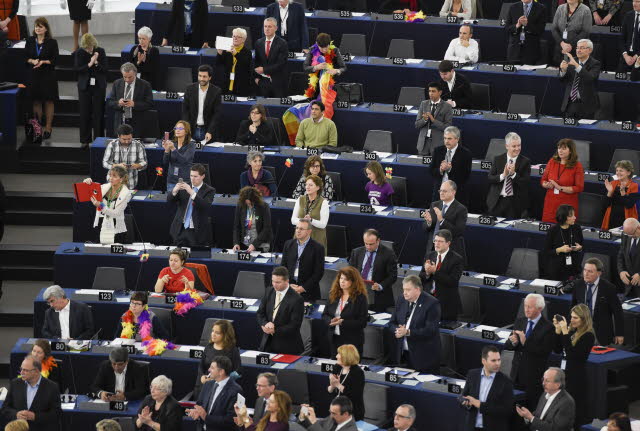 Tanti applausi ma anche qualche silenzioso dissenso. In occasione dell’intervento davanti alla plenaria del Parlamento europeo di Papa Francesco, qualche deputato europeo ha voluto ribadire che le sue posizioni non proprio in linea con quelle della Chiesa cattolica. Alcuni deputati della sinistra radicale Gue si sono presentati in Aula con boa dai colori della bandiera arcobaleno per chiedere il rispetto delle persone Lgbt. Alcune deputate, tra cui l’italiana di L’Altra Europa, Eleonora Forenza, hanno indossato la maglietta: “Io decido”, per rivendicare il diritto all’interruzione di gravidanza.