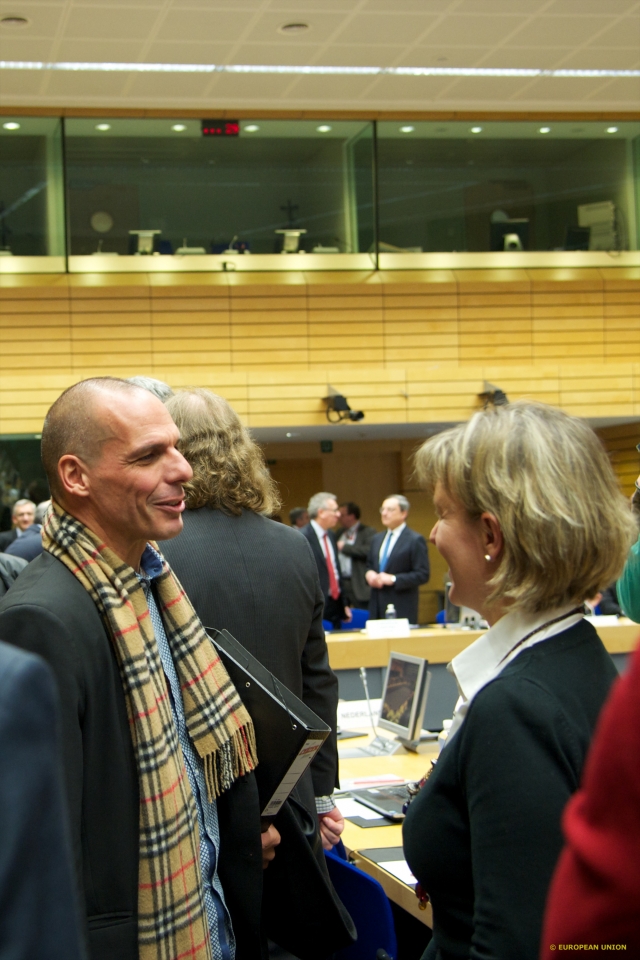 Le foto della prima riunione dei ministri delle finanze dei Paesi della Zona euro a cui ha partecipato il nuovo ministro ellenico, l'uomo scelto da Alexis Tsipras per gestire le trattative sulla ridiscussione del Programma della Troika per Atene
