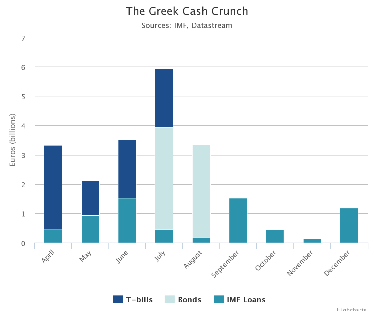 A meno che l’eurozona non accetti di sborsare la prossima trance del suo prestito ponte, la Grecia non sarà in gradi di coprire sia i 458 milioni dell’Fmi in scadenza il 9 aprile che gli stipendi e le spese di protezione sociale in scadenza il 14 aprile.
