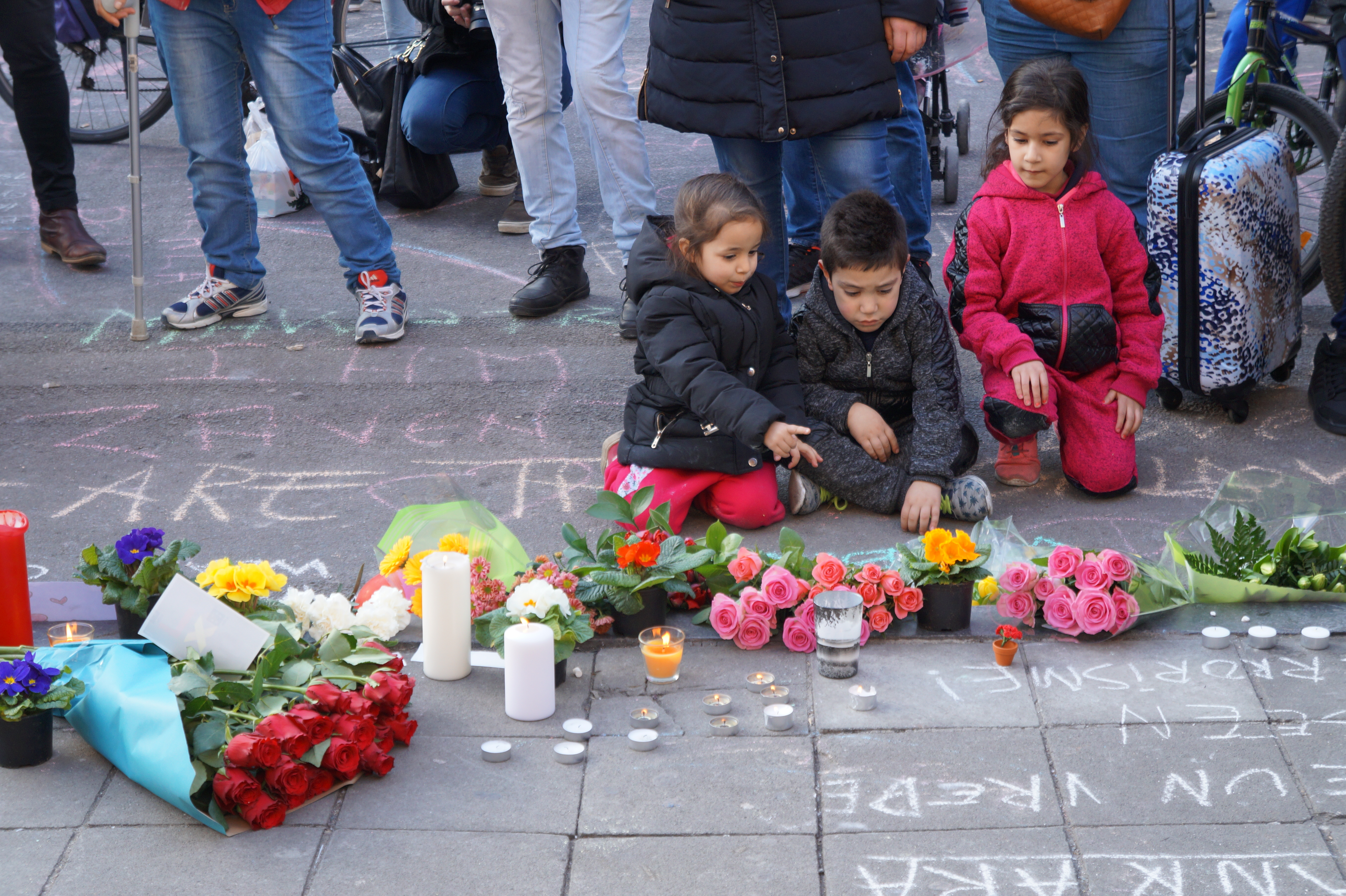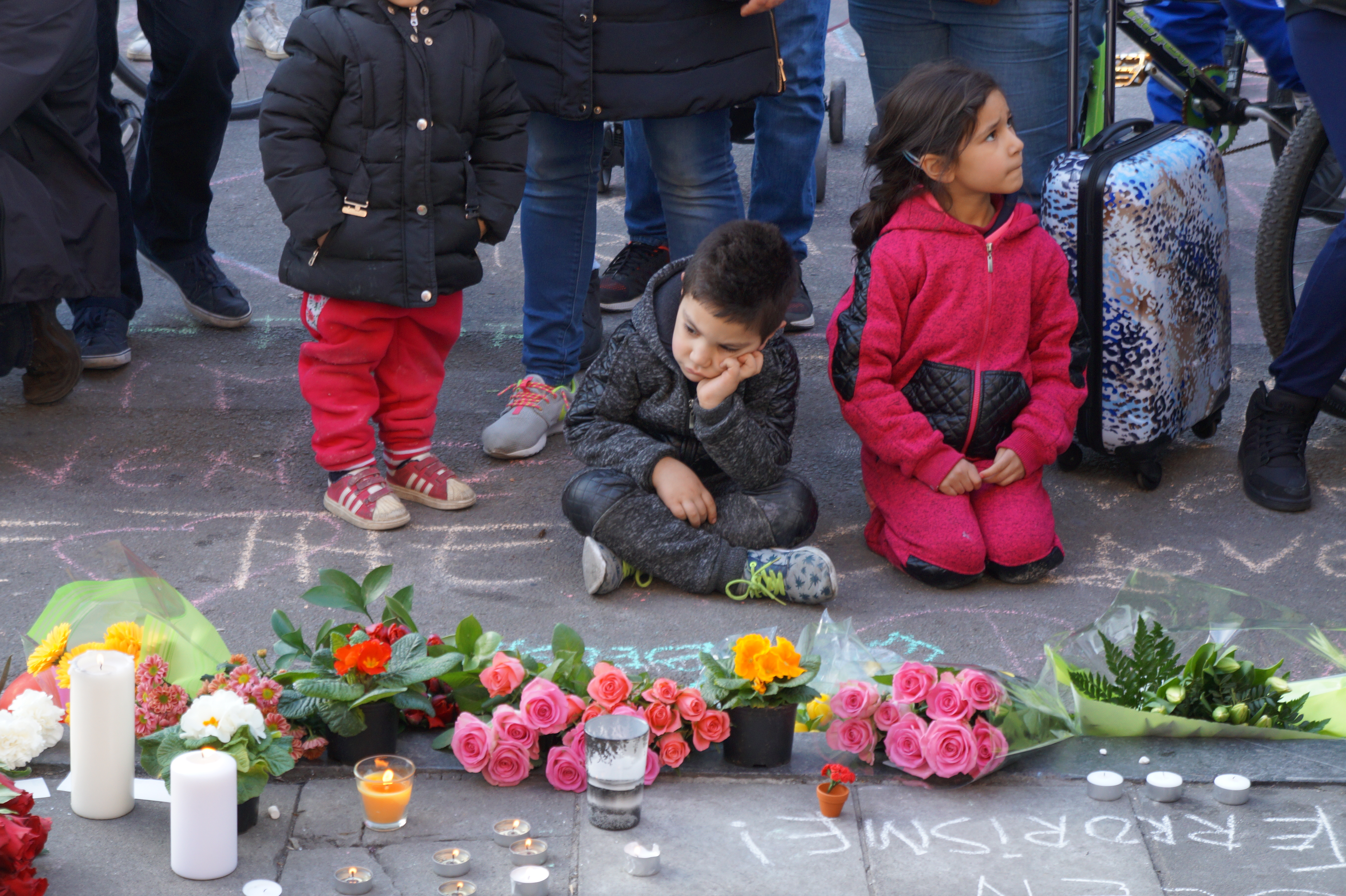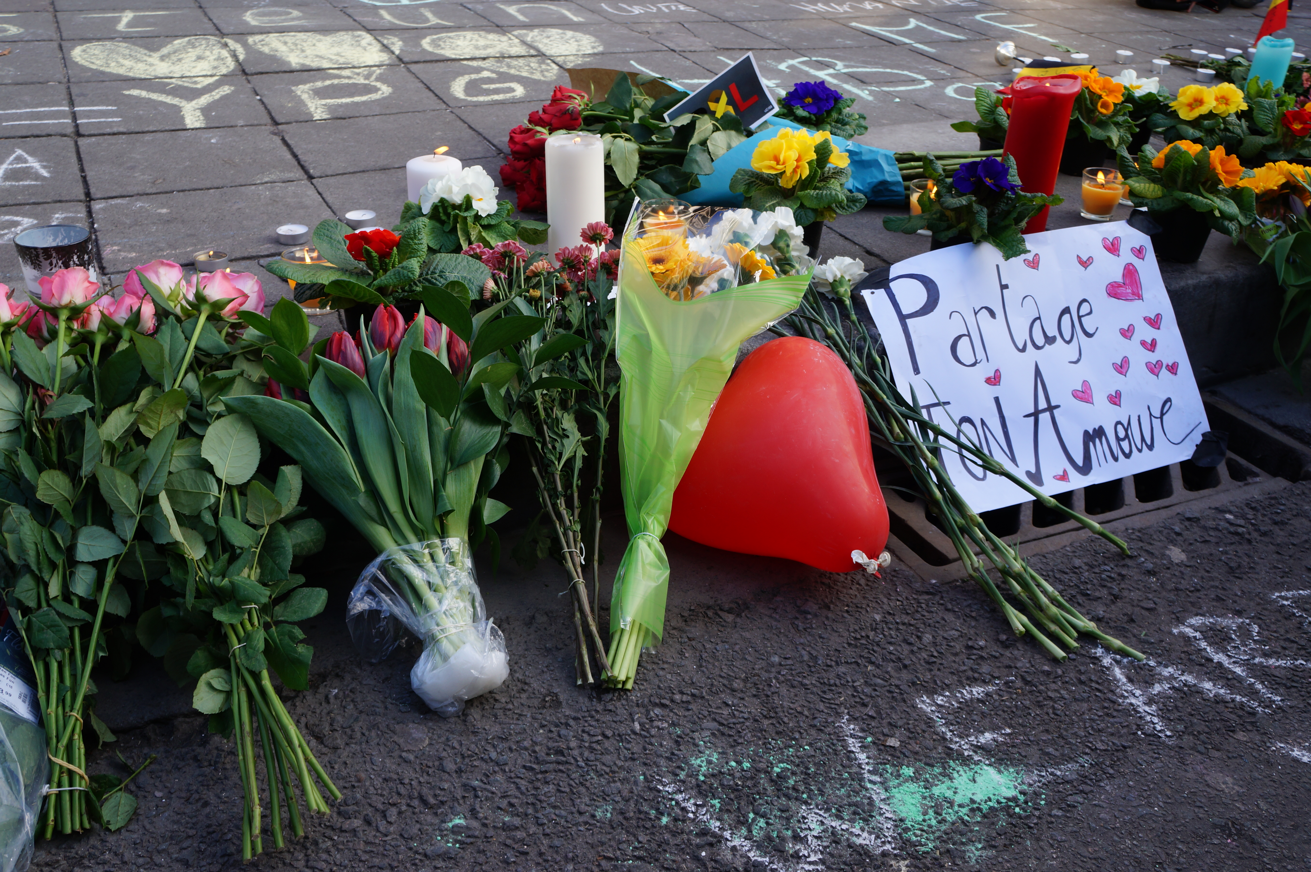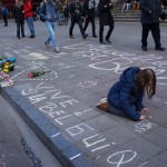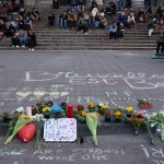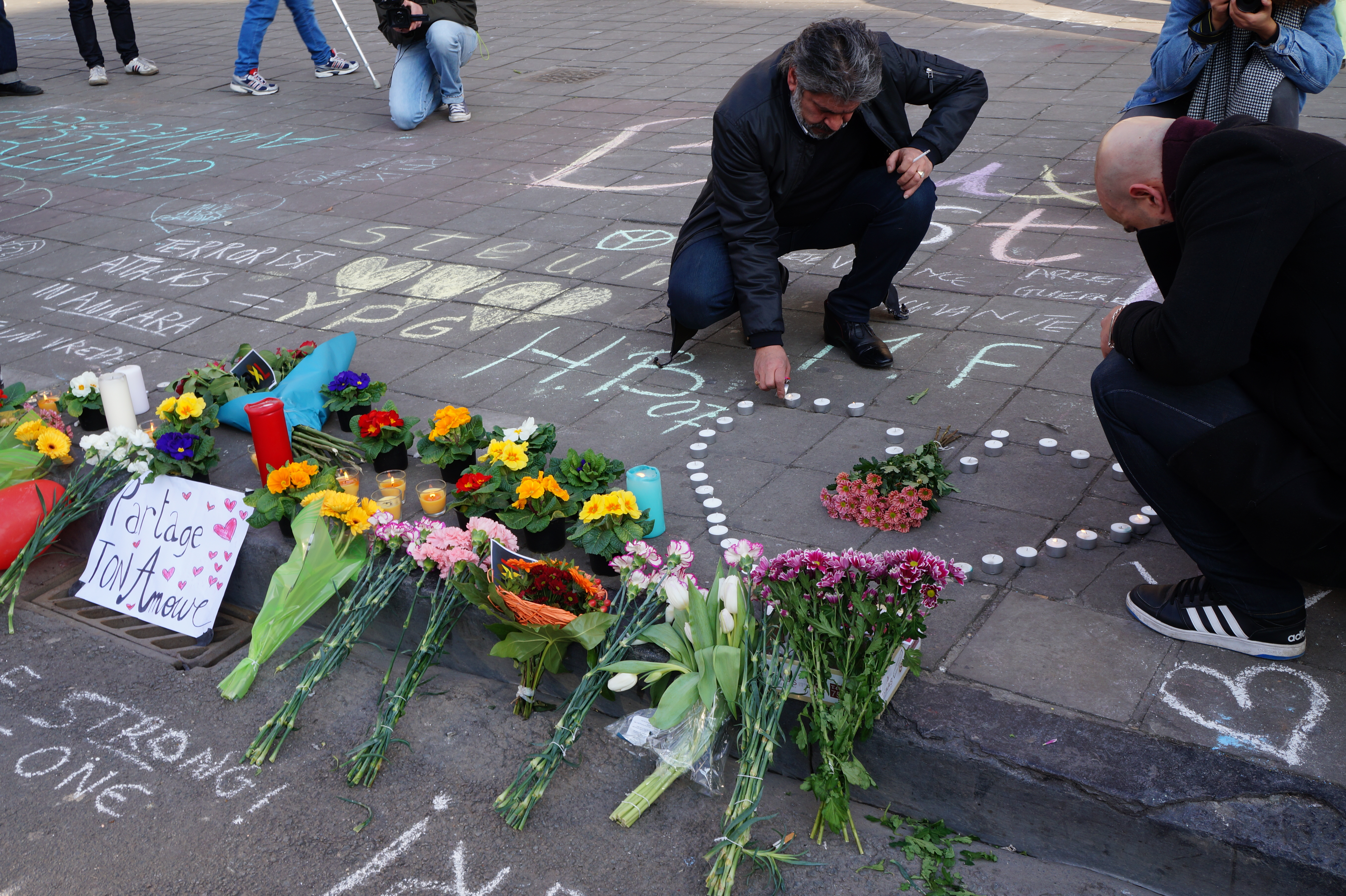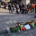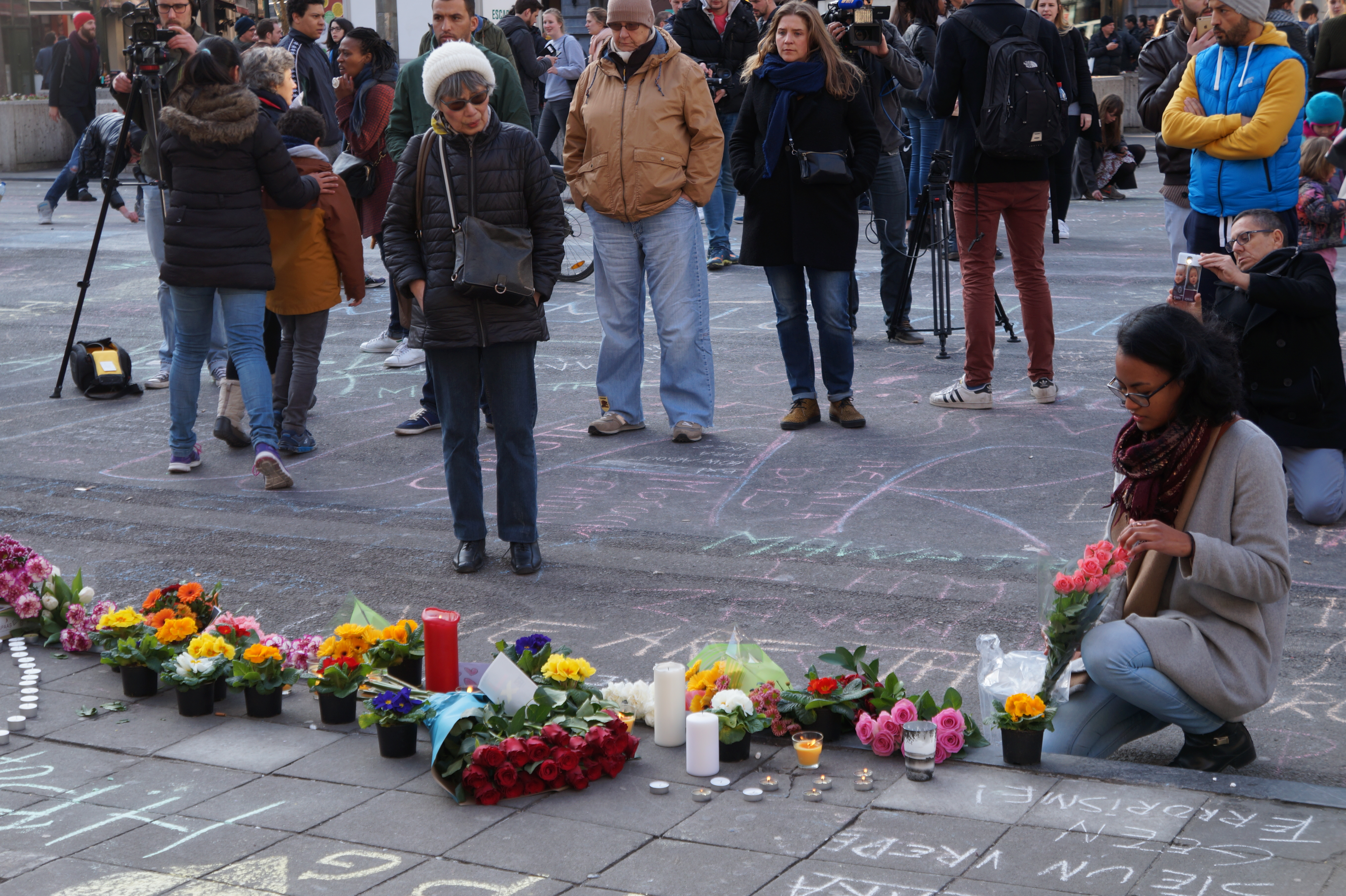 Bruxelles – I cittadini di Bruxelles si sono riuniti in piazza della Bourse, in pieno centro, per manifestare contro il terrorismo e la paura. Una manifestazione spontanea con fiori e messaggi lasciati dai passanti sul marciapiede. “Bruxelles è bella”, “Siamo forti, siamo uno” e “Condividi il tuo amore”, hanno scritto i cittadini con gessetti colorati.