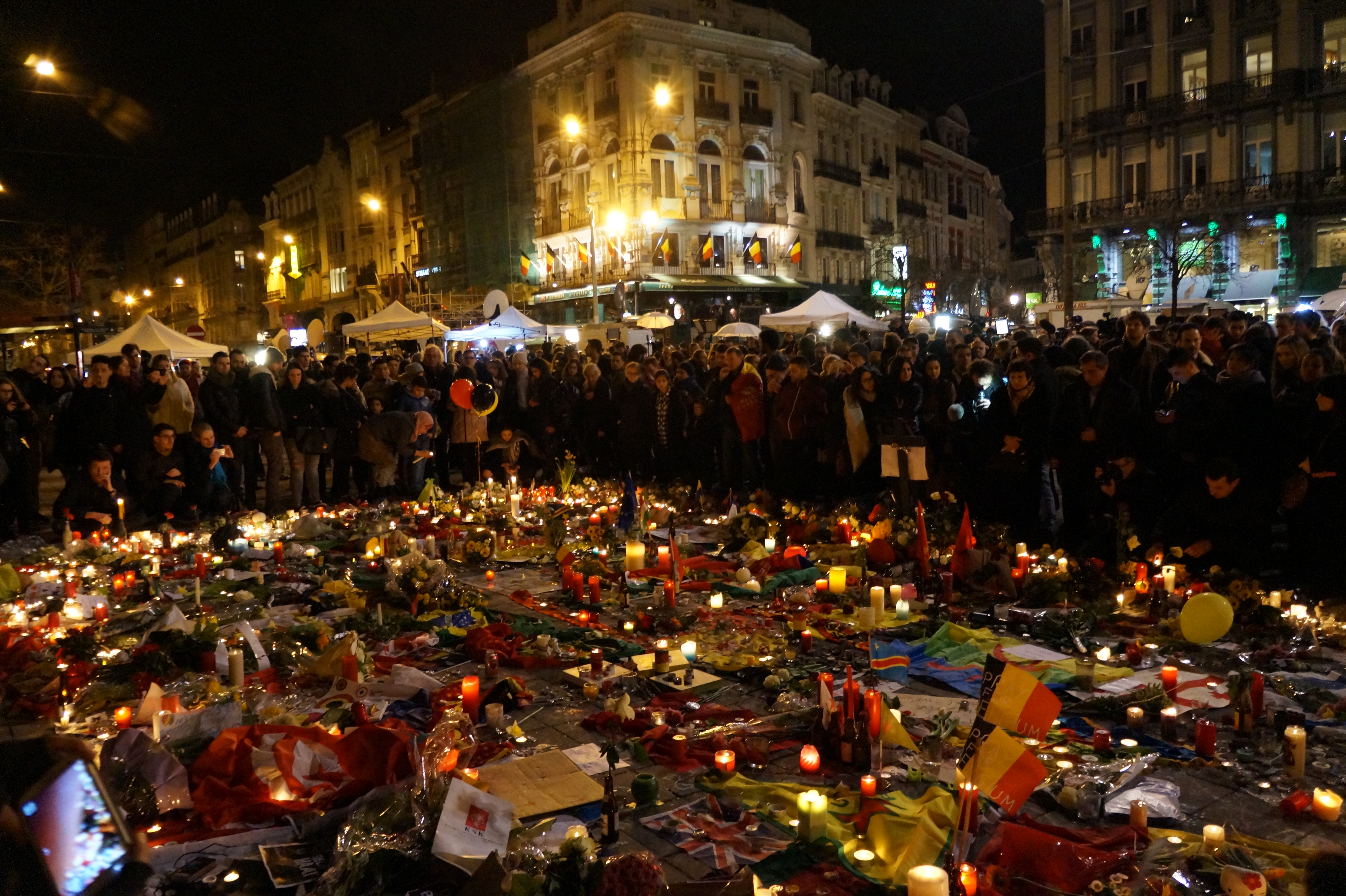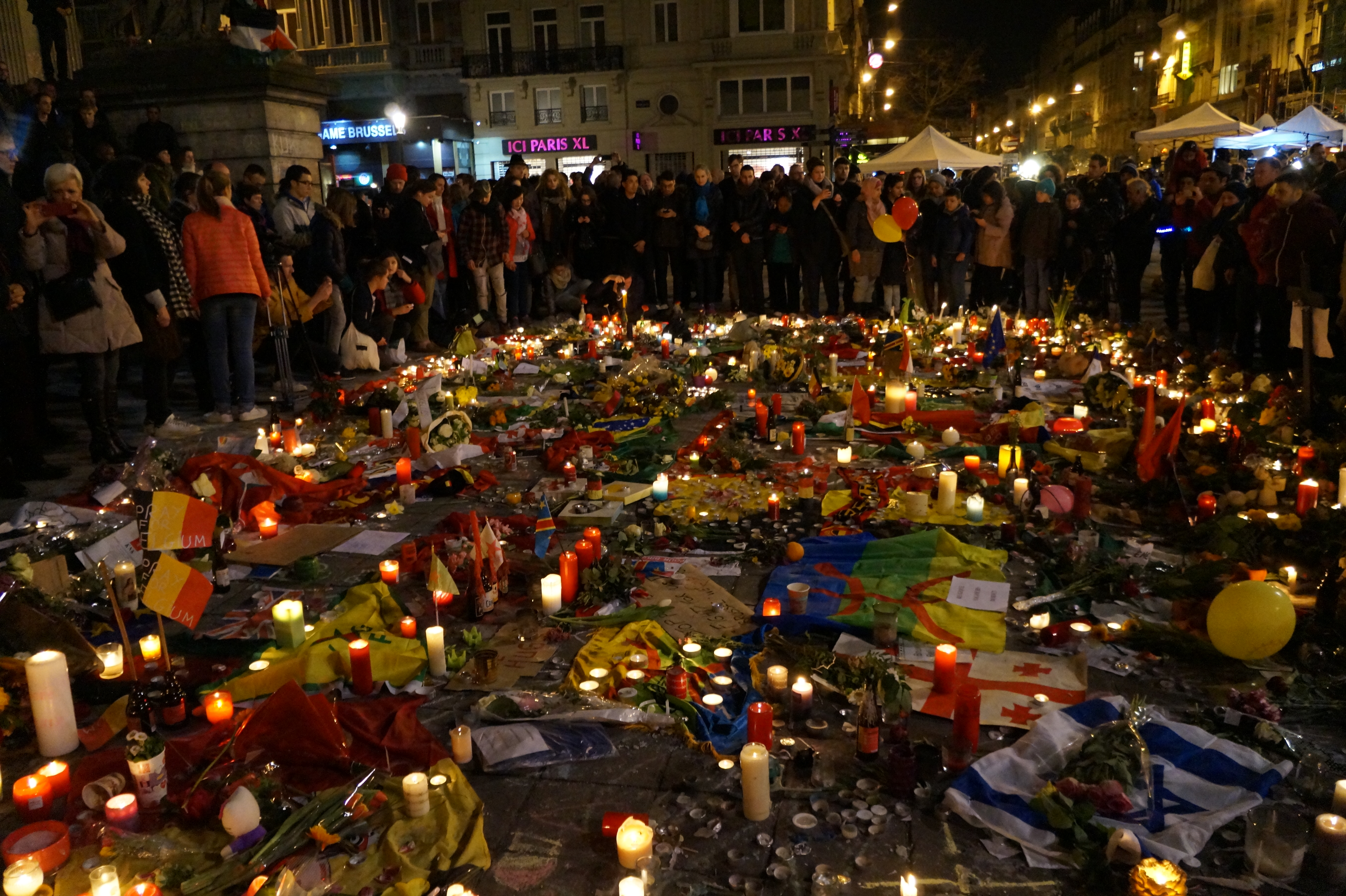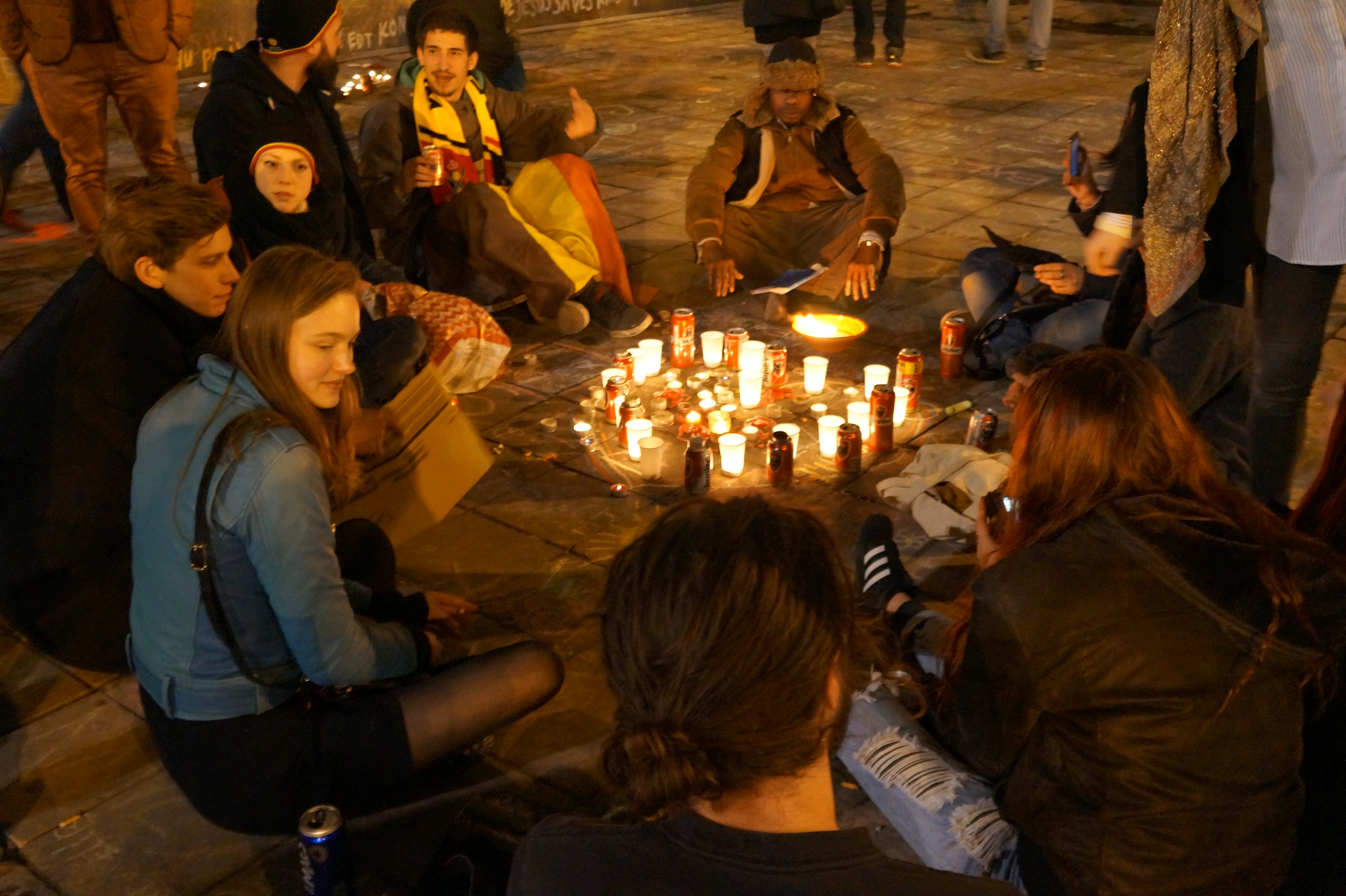 Bruxelles – I cittadini della capitale belga si sono riuniti, ieri sera, in Place de la Bourse, per ricordare le vittime degli attentati di Bruxelles. Tra candele, canti e inni alla pace, alcune persone hanno mostrato cartelli con la scritta “uniti contro l’odio”. Diverse bandiere nazionali, oltre a quella belga anche quella palestinese e israeliana.