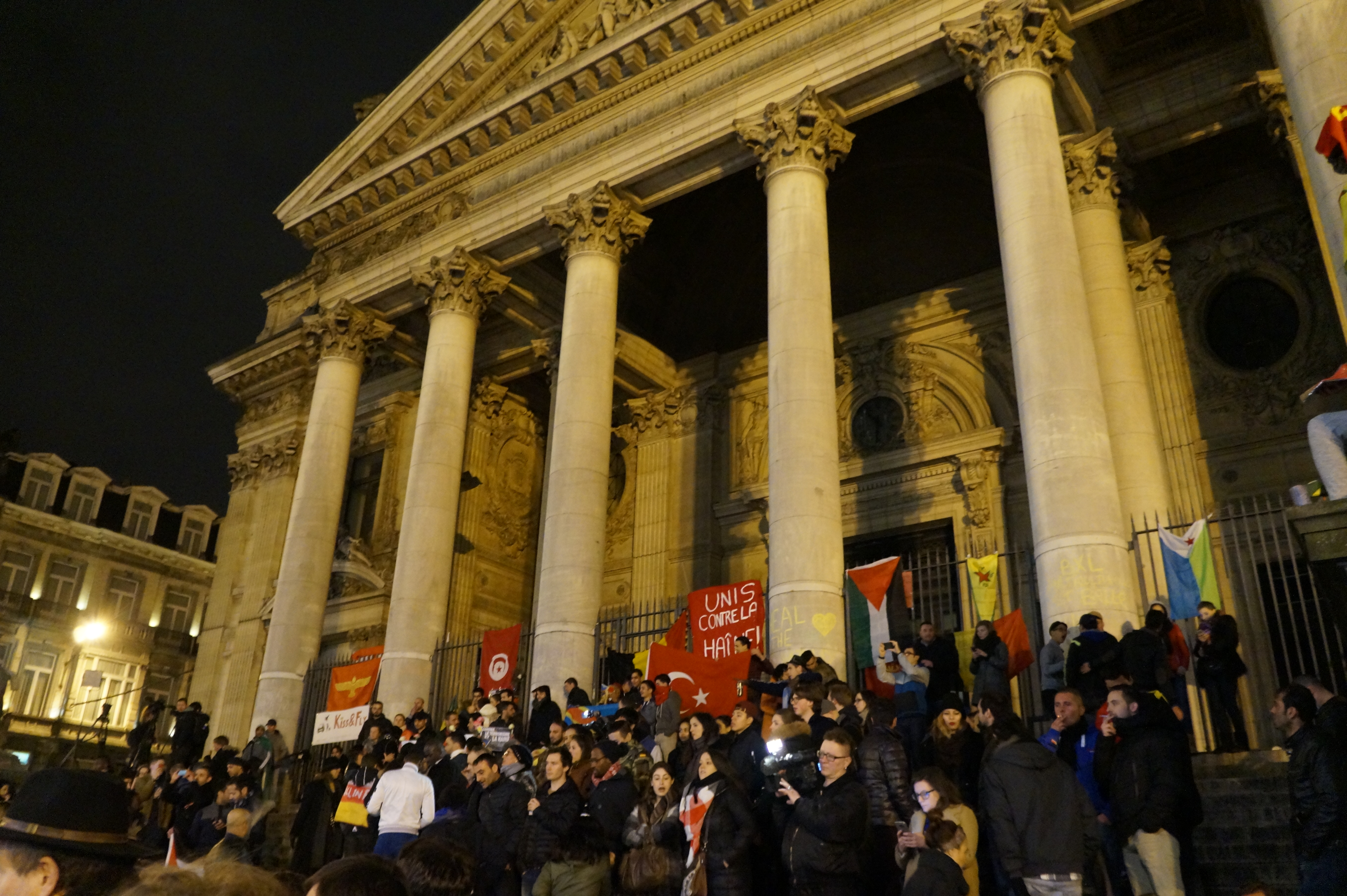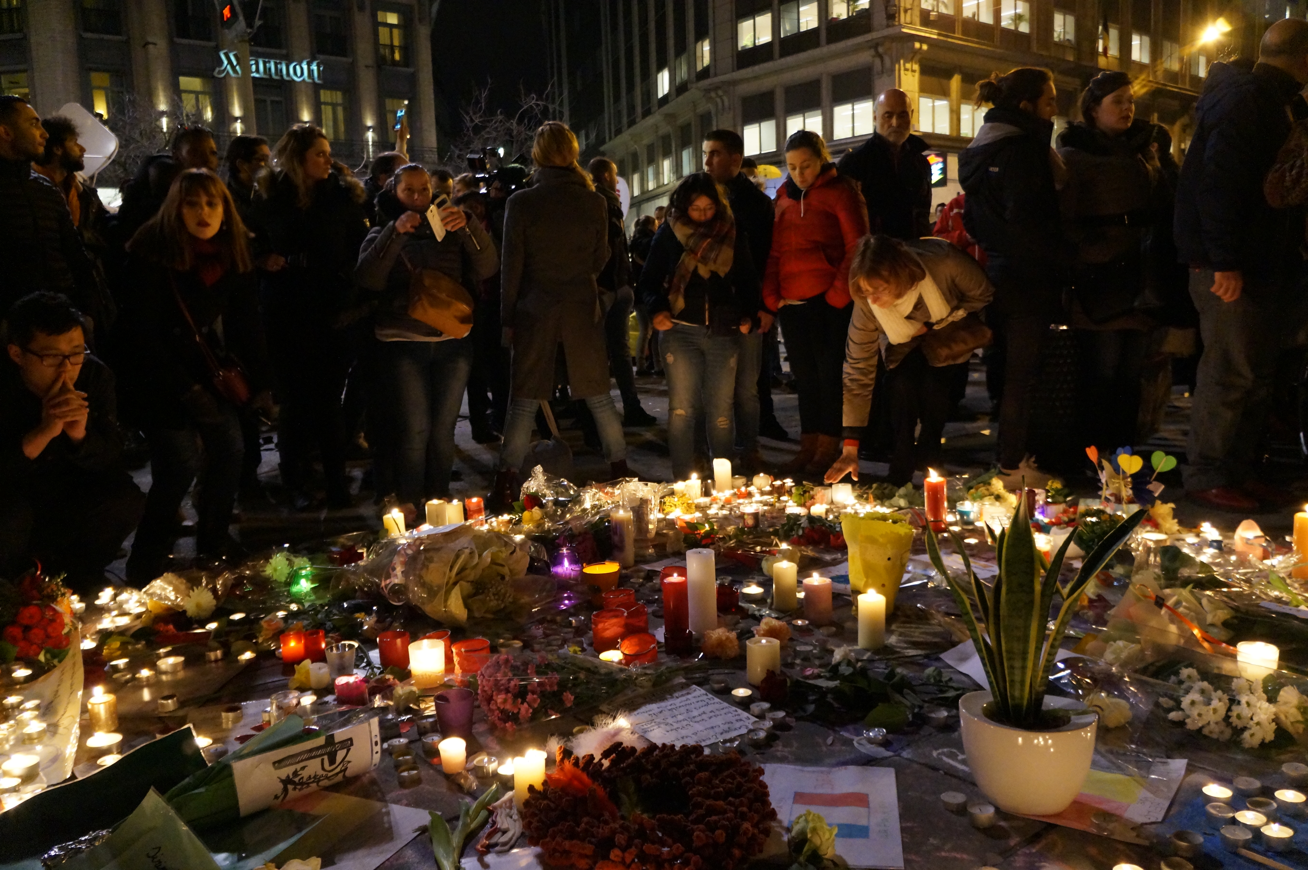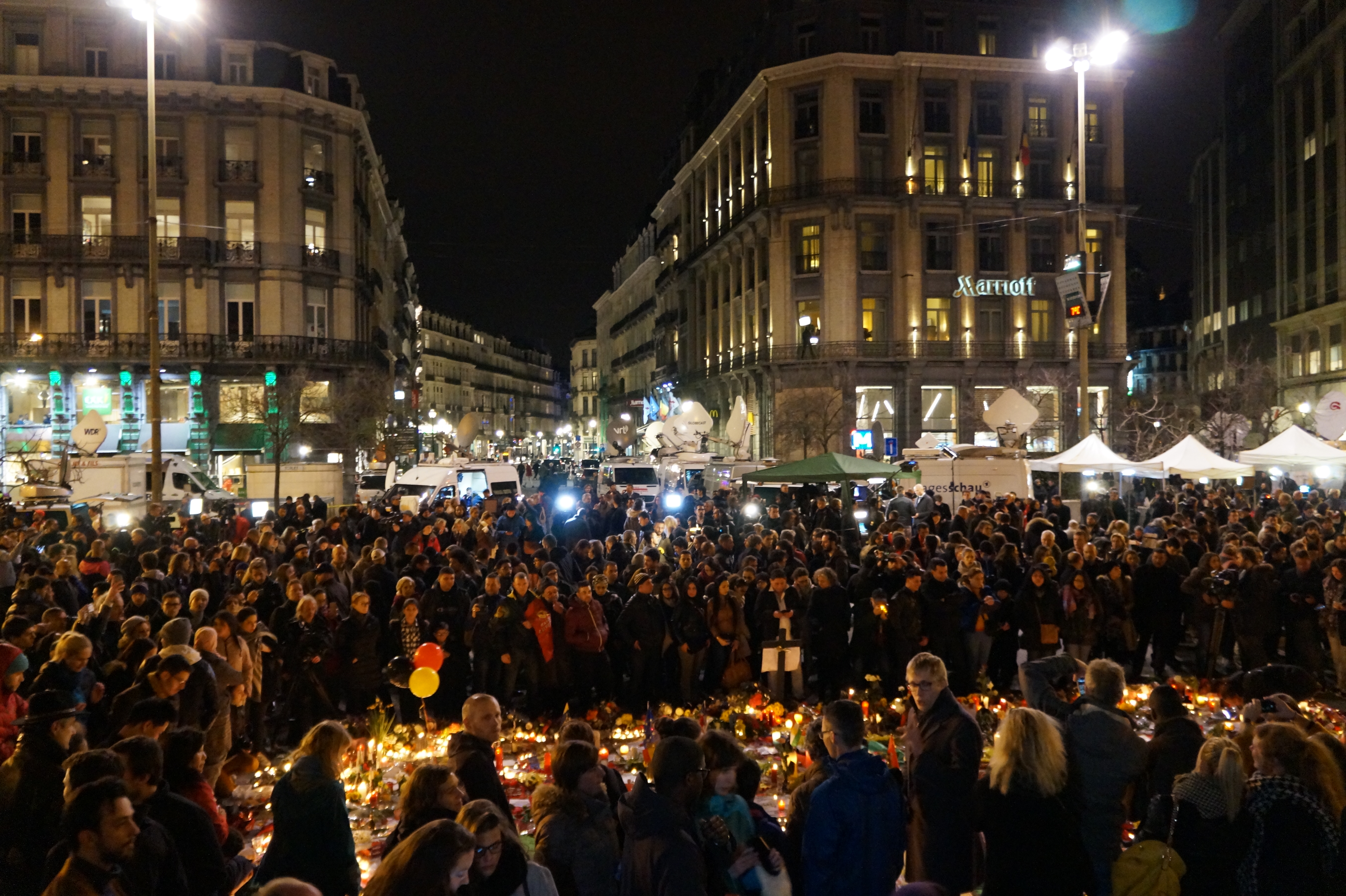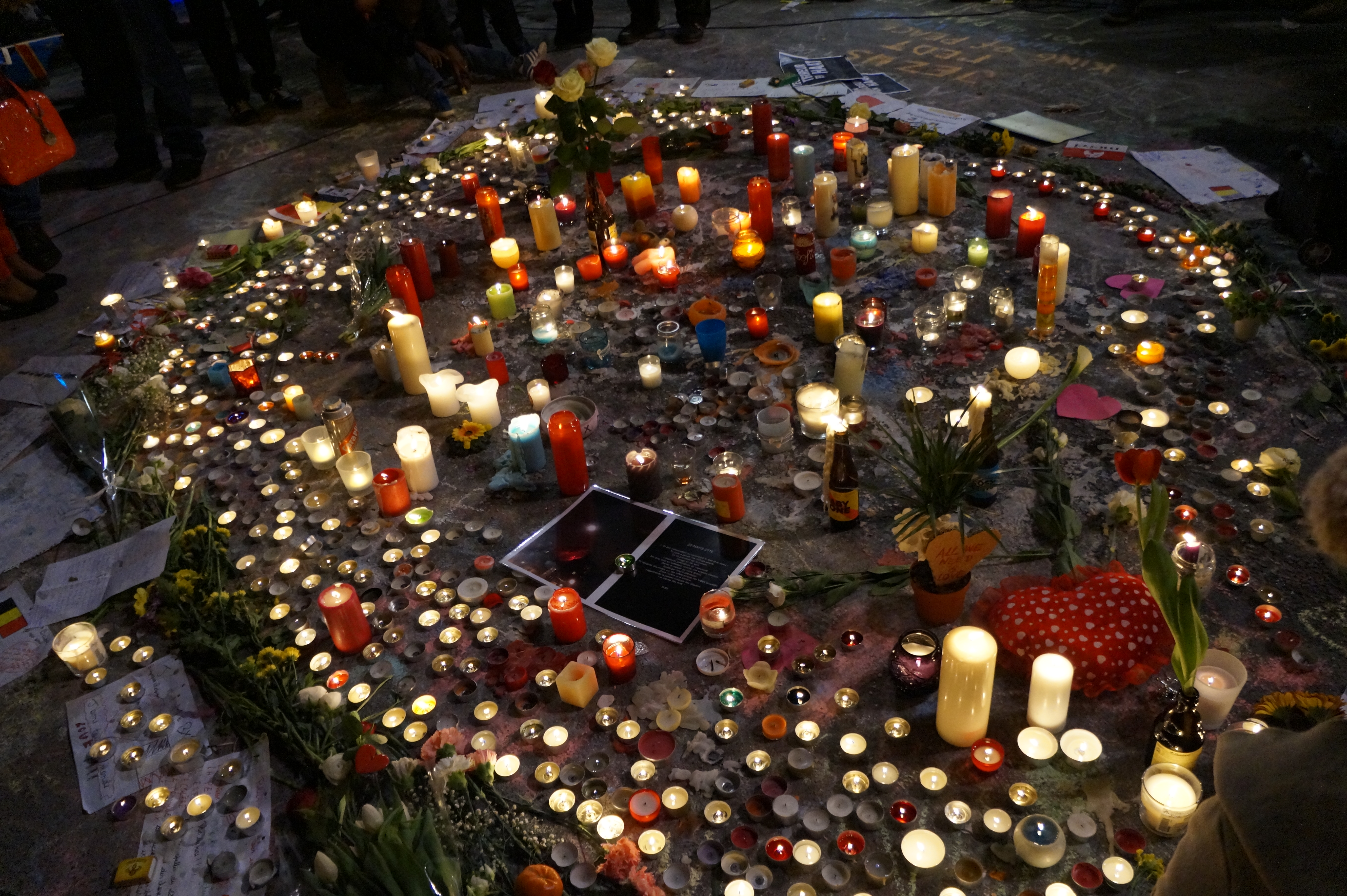 Bruxelles – I cittadini della capitale belga si sono riuniti, ieri sera, in Place de la Bourse, per ricordare le vittime degli attentati di Bruxelles. Tra candele, canti e inni alla pace, alcune persone hanno mostrato cartelli con la scritta “uniti contro l’odio”. Diverse bandiere nazionali, oltre a quella belga anche quella palestinese e israeliana.