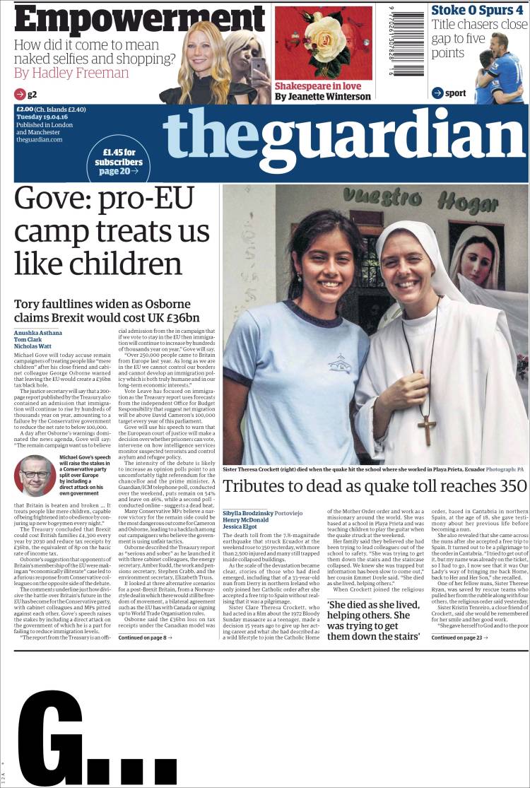 Secondo il Guardian, il voto di giugno sarà essenzialmente un voto fra il mantenimento dello status quo – cioè l’appartenenza all’Unione Europea – e il cambiamento. E dato che ogni cambiamento comporta necessariamente dei rischi, è giusto, anzi doveroso, che i fautori della permanenza nell’Unione sottolineino l’esistenza dei rischi connessi ad un uscita: negare questi rischi, accusando i pro-Ue di crearli ad hoc attraverso un fantomatico “Project Fear,” è semplicemente un modo di negare la realtà. Reality check, anyone?