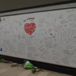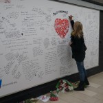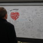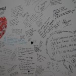 C’è poi un grande spazio su un muro dove chi passa potrà scrivere qualcosa (due pennarelli neri sono messi a disposizione di chi vuol lasciare il suo segno) , un ricordo, una riflessione. Anche un disegno. Chissà cosa diventerà questo muro del ricordo.