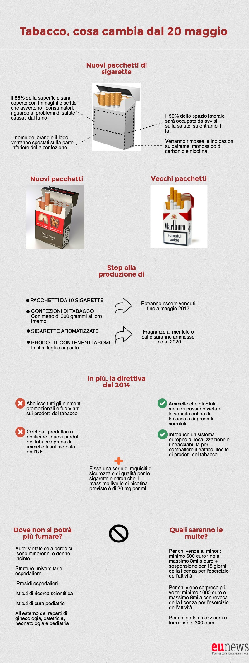 Bruxelles – ll mondo del tabacco in Europa cambia, e non di poco. Da venerdì 20 maggio, i Paesi dell’Unione europea si uniformano alla direttiva europea 2014/40 che prevede nuove misure e nuove grafiche per i pacchetti di sigarette e per quelli di tabacco. Ad ora però, solo 13 Stati sono pronti per seguire le regole europee.
