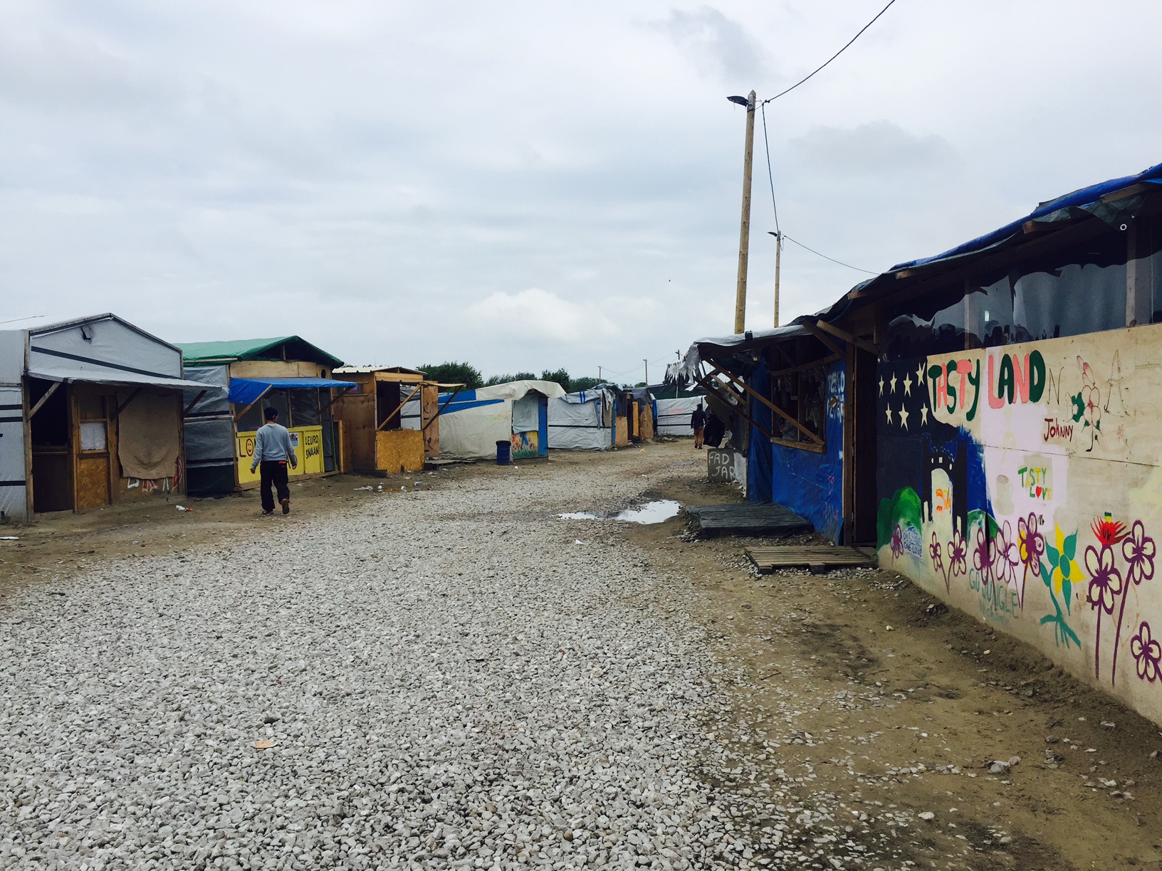 E invece è sempre lì, con le sue baracche, le sue vie, i suoi abitanti. Sì, perché ormai la Giungla si è trasformata in una piccola città. Brutta, certo. Sporca, povera, ma dove la vita prova impertinente a continuare. Lungo il “corso” principale tanti sorridono, hanno voglia di parlare. Come Abdul, che cucina cibo afghano, in un bel ristorante. Bello davvero: tessuti colorati a coprire le pareti della baracca, tavoli e sedie spaiati ma dignitosi e una vetrinetta piena di specialità. Come tutti, sogna di partire: di riuscire ad infilarsi in qualche camion e dire addio a queste baracche. Ma nel frattempo prova ad apparecchiarci una vita normale. Come lui, molti altri. Di ristoranti ce ne sono diversi, uno per ogni etnia. Un volontario mi racconta di avere incontrato, qualche sera fa, un gruppo di quindici persone che dall’esterno, si addentravano nella Giungla per cenare. A scandire le giornate c’è il canto del muezzin, che chiama alla preghiera nelle sei diverse moschee nate in questi mesi tra le tende. E poi c’è chi vende cibo, chi indumenti e scarpe, chi espone un cartello “lezioni di inglese”, chi per un euro cucina all’istante tre “London bread”, (che altro non sono che tipici pani arabi, ma è bello sognare un po’). In fondo alla strada, un barbiere ha adornato la sua vetrina con le bombolette di gas lacrimogeno che la polizia ha lanciato sui migranti negli scontri di questi mesi. Un bizzarro souvenir, per i pochi fortunati che riusciranno a partire. Sugli scaffali, anche qualche tinta per capelli, anche se di donne nel campo non c’è praticamente l’ombra.