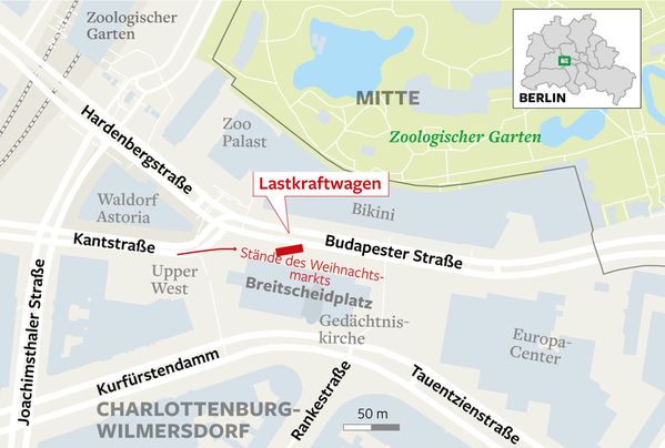 L’attacco è avvenuto verso le 20.15 di lunedì sera al mercatino di Breitscheidplatz nel quartiere di Charlottenburg, ad ovest di Berlino, vicino alla famosa via dello shopping di Kurfusterdamm.