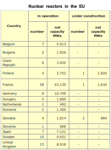 Bruxelles – La Francia è la capitale nucleare d’Europa. Il 51% dell’energia da atomo prodotta nel territorio dell’Ue nel 2015 è francese. Sugli 857.129 GigaWattora elettrici prodotti nell’anno di riferimento, 437.428 provengono dai 58 reattori delle 19 centrali attive in Francia (Belleville, Blayais, Bugey, Cattenom, Chinon, Chooz, Civaux, Cruas, Dampierre, Fessenheim, Flamanville, Golfech, Gravelines, Nogent, Paluel, Penly, Saint-Alban, Saint-Laurent, Tricastin).
