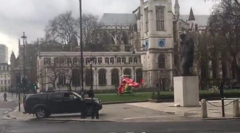 Un’eliambulanza è atterrata sul prato davanti a Westminster. La zona è stata sigillata dalla polizia in assetto di guerra e molte ambulanze sono poi accorse per medicare, sul posto, i feriti.