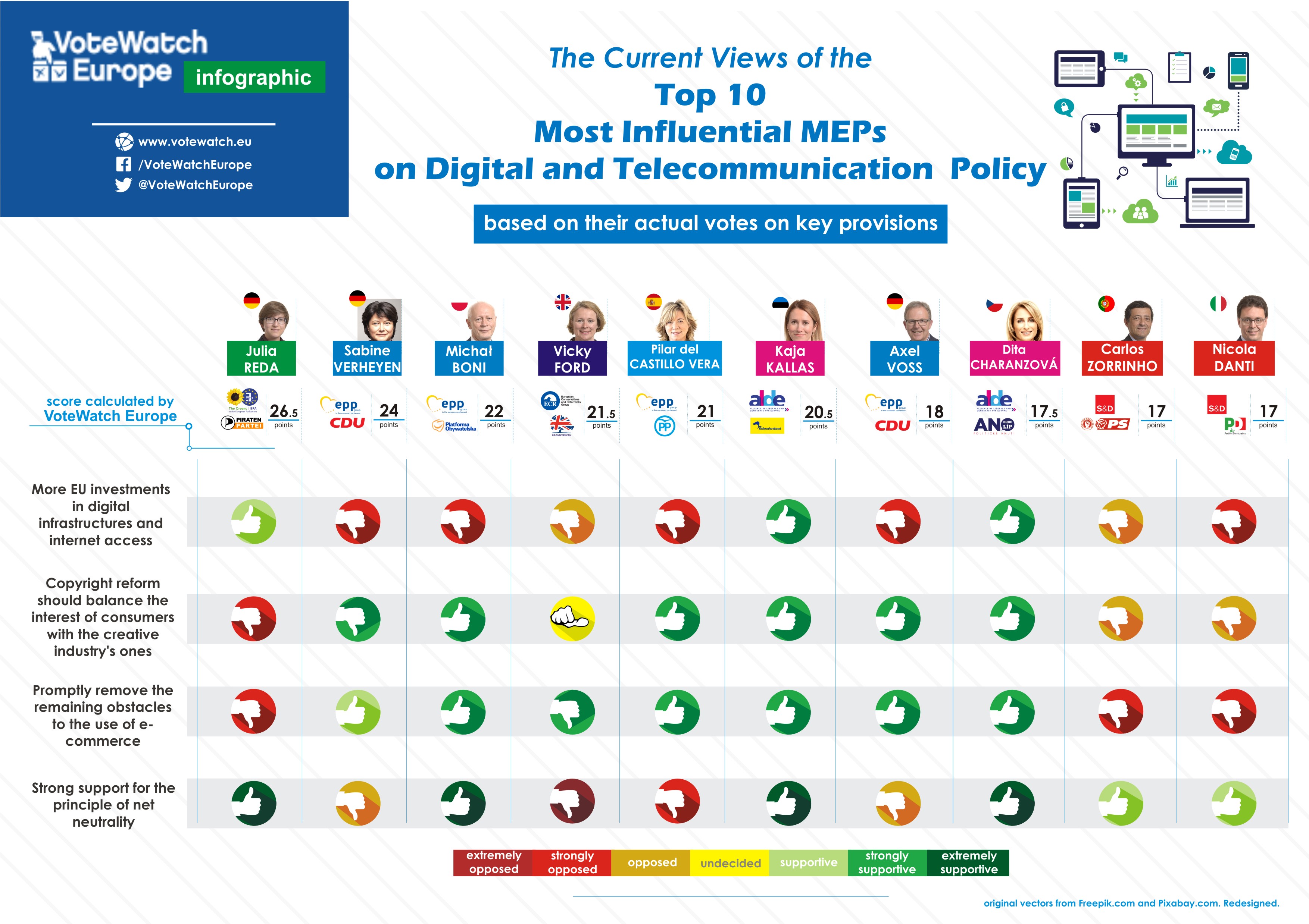 Un altro errore da non fare è confondere l’influenza come delegazione nazionale con l’unità d’intenti. Fra gli europarlamentari più influenti ci sono due donne tedesche, Sabine Verheyen e Julia Reda, ma appartengono a partiti politicamente agli antipodi: la Cdu e il Partito pirata. Le loro visioni sulla riforma del diritto d’autore, la neutralità di internet e l’e-commerce sono quindi completamente differenti. Unico italiano nella Top 10 degli eurodeputati più influenti sulle politiche digitali è Nicola Danti (Pd).
