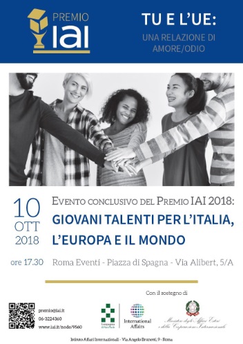 Inaugurato quest’anno dall’Istituto Affari Internazionali, il Premio IAI è nato soprattutto con lo scopo di coinvolgere attivamente, con progetti concreti, ragazze e ragazzi nelle scelte di politica internazionale. Per il suo valore, l’iniziativa è stata onorata della Medaglia di Rappresentanza del presidente della Repubblica.