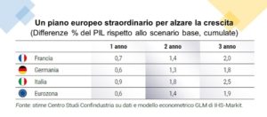 Gli industriali italiani insieme a Confindustria tedesca e francese lanciano la proposta di un piano d’investimenti pubblici straordinario di 3 mila miliardi di euro, con una prima tranche di 500 miliardi sui prossimi tre anni in gradi di rialzare la crescita dell’eurozona di 1,9 punti.