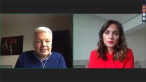 Il commissario europeo alla Giustizia, Didier Reynders, partecipa al webinar organizzato dall’European policy centre. A destra la moderatrice dell’evento, Corina Stratulat.