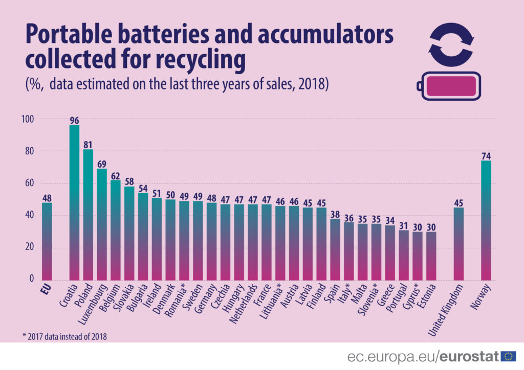 Secondo i dati a disposizione di Eurostat, nel 2018 la Germania ha saputo recuperare 23.569 tonnellate di accumulatori energetici tecnologici, la Francia 14.400 tonnellate, la Polonia 10.706 tonnellate. L’Italia si ferma a quota 9.488 tonnellate. Si tratta però di dati riferiti al 2017, poiché il Paese non ha saputo fornire informazioni più aggiornate.