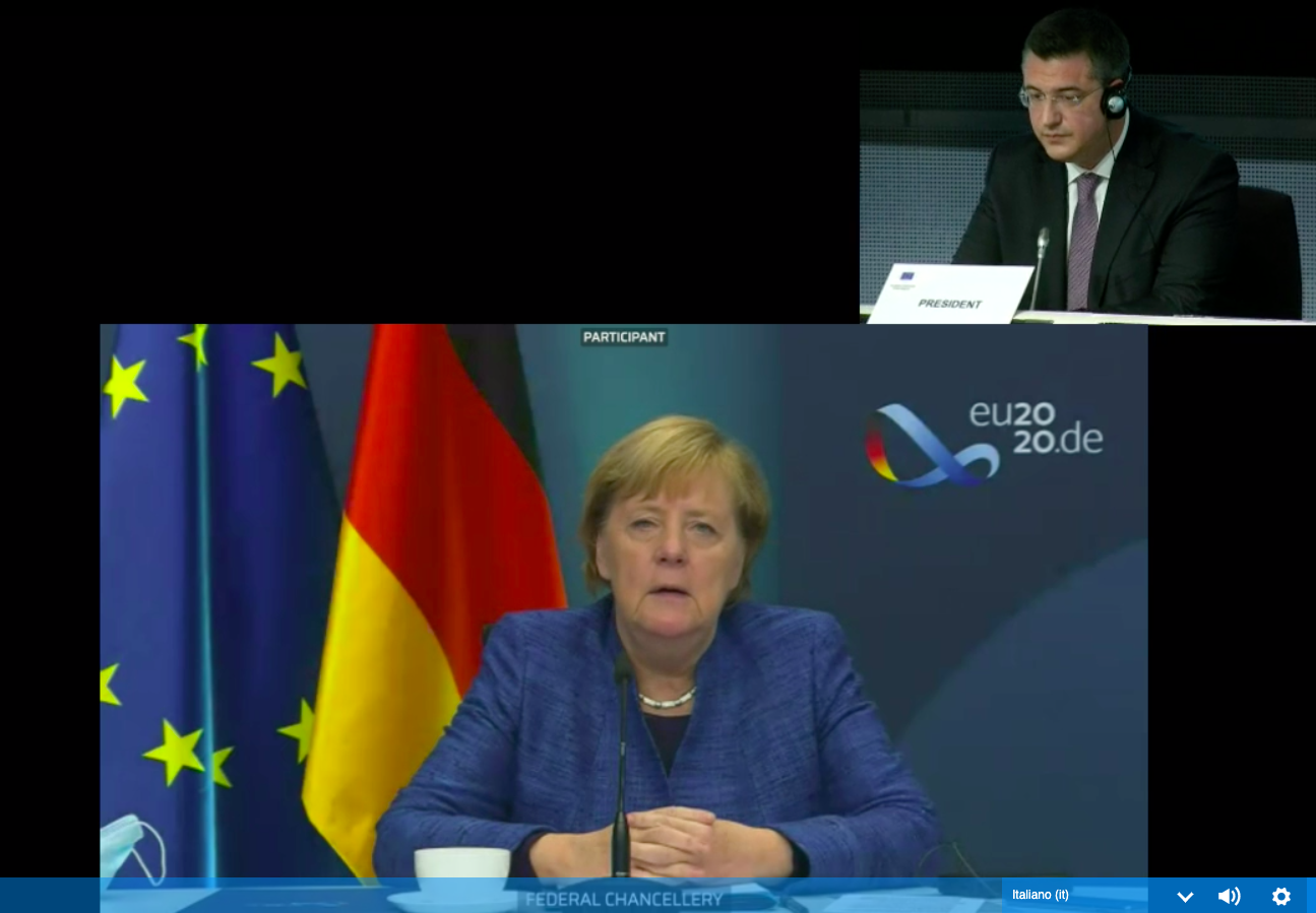 “In questi tempi straordinari, sono necessarie misure straordinarie”, dice Merkel, facendo eco alle parole della presidente della Commissione europea, Ursula von der Leyen. Ma i negoziati con il Parlamento europeo sono attualmente in stallo e mancano poco più di due mesi alla scadenza dell’attuale Bilancio (2014-2020). La tedesca assicura che la presidenza di turno “sta lavorando di buona lena con l’Eurocamera” per arrivare a sbloccare i fondi, come previsto, già a partire dal 2021. Ma rimangono ancora insolute le questioni delle nuove risorse proprie (manca la posizione del Consiglio per avviare la ratifica nazionale), dello stato di diritto (negoziati a tre appena avviati) e dei 15 programmi “faro” per i quali il Parlamento chiede più risorse.