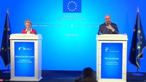 Bruxelles – Diritti umani non negoziabili per un rilancio dell’agenda positiva con l’Unione Europea. Lo ribadiscono in conferenza stampa i vertici europei Ursula von der Leyen e Charles Michel a conclusione di una visita in Turchia con l’obiettivo di distendere i rapporti tesi con Ankara. All’incontro con il presidente Recep Tayyip Erdogan, i presidenti di Commissione e Consiglio europeo ripropongono “un’agenda positiva” che sia progressiva, proporzionata e reversibile su questioni di reciproco interesse, ovvero fronte economico, migrazioni e mobilità. Un incontro che arriva dopo le conclusioni del Consiglio europeo di marzo in cui i capi di Stato e di governo hanno sostenuto la necessità di un nuovo dialogo con Ankara, nonostante non ci sia alcuna intenzione del governo turco di fare progressi su democrazia e diritti umani, anzi.