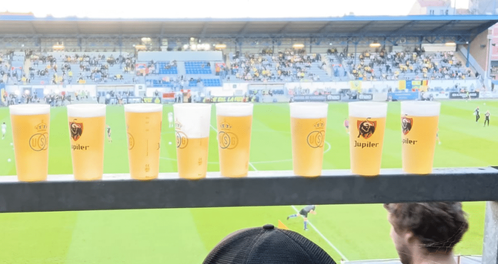Con gli anni Settanta, l’avvento delle prime sponsorizzazioni delle squadre cambia radicalmente paradigma e panorama del sistema calcio. La birra non entra solo negli stadi, ma scende in campo. Il Belgio è uno dei migliori esempi. Nel 1972 la federazione belga dà il via a maglie con griffe commerciali. Costant vanden Stock, presidente dell’Anderlecht, la stagione successiva appone lo sponsor dell’azienda di famiglia: Belle Vue, storico birrificio di Bruxelles noto per le birre lambic e gueuze, le tipiche acidule tipiche del regno. Nel 1978 la casa Vanhonsebrouck, desideroso di conquistare fette di mercato nel settore delle birre acidule, diventa sponsor del Brugge con St-Louis, prodotto di punta del birrificio, dando avvio a quella che ancora oggi viene ricorda come ‘guerra delle Gueuze’. Una guerra commerciale e sportiva che dà i suoi frutti: il birrificio Vanhonsebrouck cresce in popolarità e domanda, diventando il secondo produttore nazionale del particolare prodotto birricolo. Ma anche il fatturato di Belle Vue cresce.