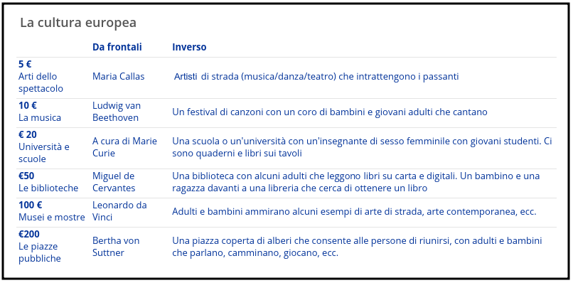 Il primo tema selezionato è ‘la cultura europea’, che celebra gli spazi culturali condivisi che hanno plasmato l’identità europea nel corso dei secoli e una selezione di personalità europee chiave che hanno contribuito a costruire il patrimonio culturale europeo. E’ in questa categoria che la Bce, tra gli altri, ha indicato la figura di Leonardo da Vinci, destinata ai tagli da 100 euro delle prossime banconote.