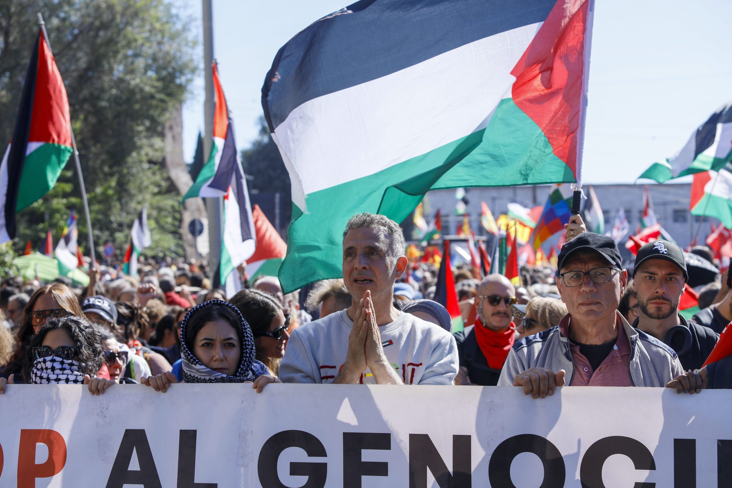 In un inedito storico, l’epicentro di questo movimento transnazionale spontaneo è stato proprio il Belpaese. L’apice della mobilitazione nazionale si è registrato a Roma sabato scorso (4 ottobre), quando centinaia di migliaia di manifestanti – gli organizzatori parlano di oltre un milione di presenze – hanno letteralmente inondato le strade della capitale sfilando in un immenso corteo, colorato e plurale, per chiedere pacificamente la fine del genocidio a Gaza, il riconoscimento incondizionato della Palestina, la protezione diplomatica per gli attivisti della Flotilla e la fine della complicità del governo italiano coi crimini di guerra commessi da Tel Aviv nella più totale impunità e in sfregio assoluto del diritto internazionale.