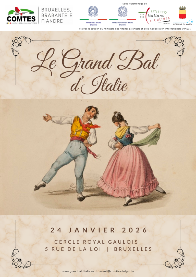 Organizzato dal Comites Bruxelles Brabante e Fiandre, con il patrocinio dell’Ambasciata d’Italia in Belgio, del Consolato Generale d’Italia a Bruxelles, dell’Istituto Italiano di Cultura di Bruxelles e del Comune di Napoli, il Grand Bal d’Italie ha riunito oltre 350 persone tra rappresentanti delle istituzioni italiane e locali, del mondo diplomatico, culturale e associativo, insieme a numerosi ospiti, rafforzando il ruolo dell’evento come spazio di incontro e dialogo tra Italia e Belgio.