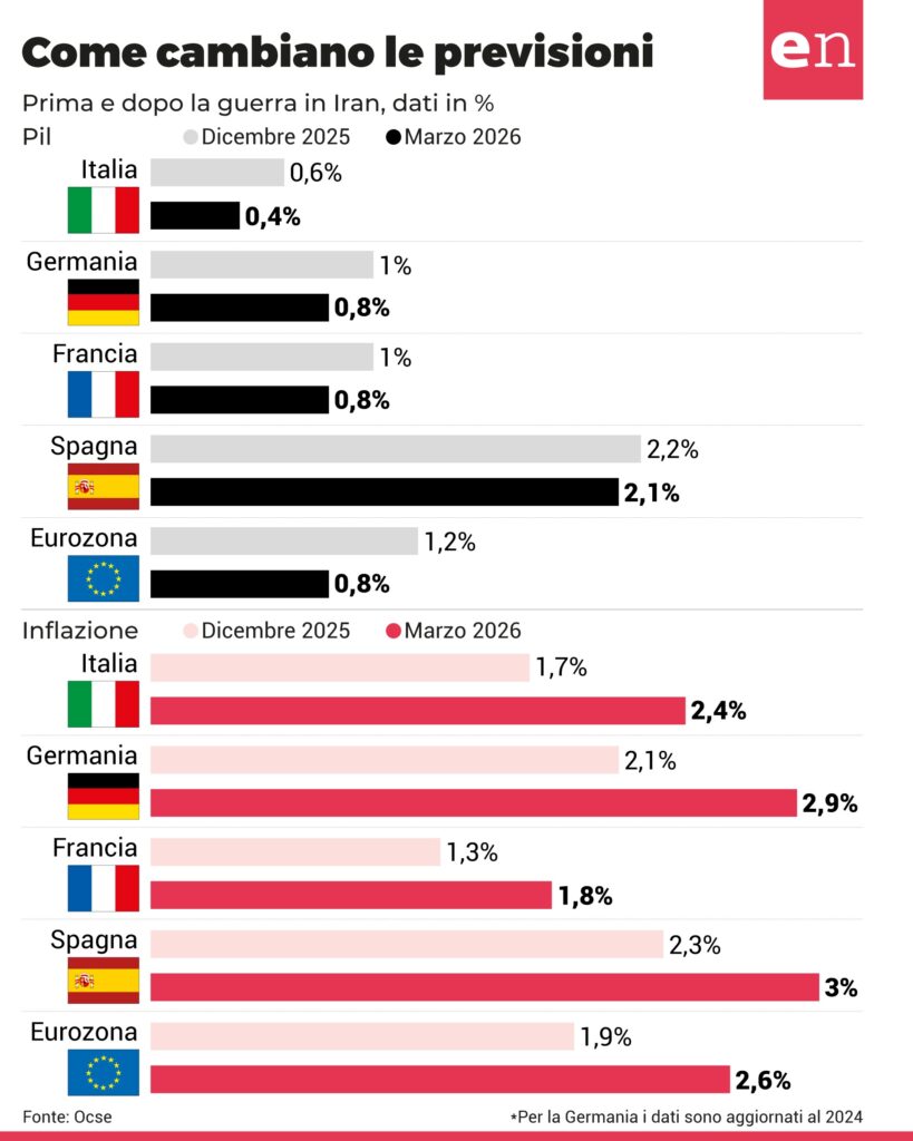Dombrovskis fa fatica a essere ottimista: “Lo stretto di Hormuz viene usato come arma e le strutture energetiche continuano a essere bombardate”. Il risultato di tutto questo è che “lo scenario è offuscato da profonda incertezza“. Non ci sono, in sostanza, le condizioni per attendersi un andamento economico diverso da quello offerto.