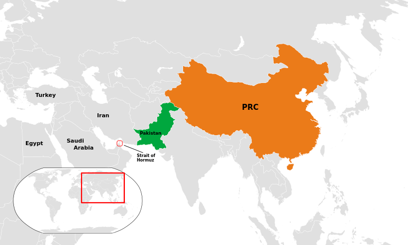 In questo scenario opera la Cina. Se la Turchia si trova sulla frontiera euro-asiatica da un punto di vista geografico e politico-militare, Pechino ha con il Pakistan relazioni solide dal 1951, sfociate nel Corridoio economico Cina-Pakistan (CPEC), rete infrastrutturale volta ad assicurare a Pechino le forniture energetiche dal Medio Oriente attraverso reti di trasporto dirette che aggirano lo stretto di Malacca. Il Pakistan è bagnato dal mar Arabico, e permette il collegamento diretto mare-terra con la frontiera cinese. Ma oltre il mar Arabico c’è lo stretto di Hormuz, ora chiuso per la guerra. L’alleanza sino-pakistana è commerciale, ma pure di cooperazione militare.