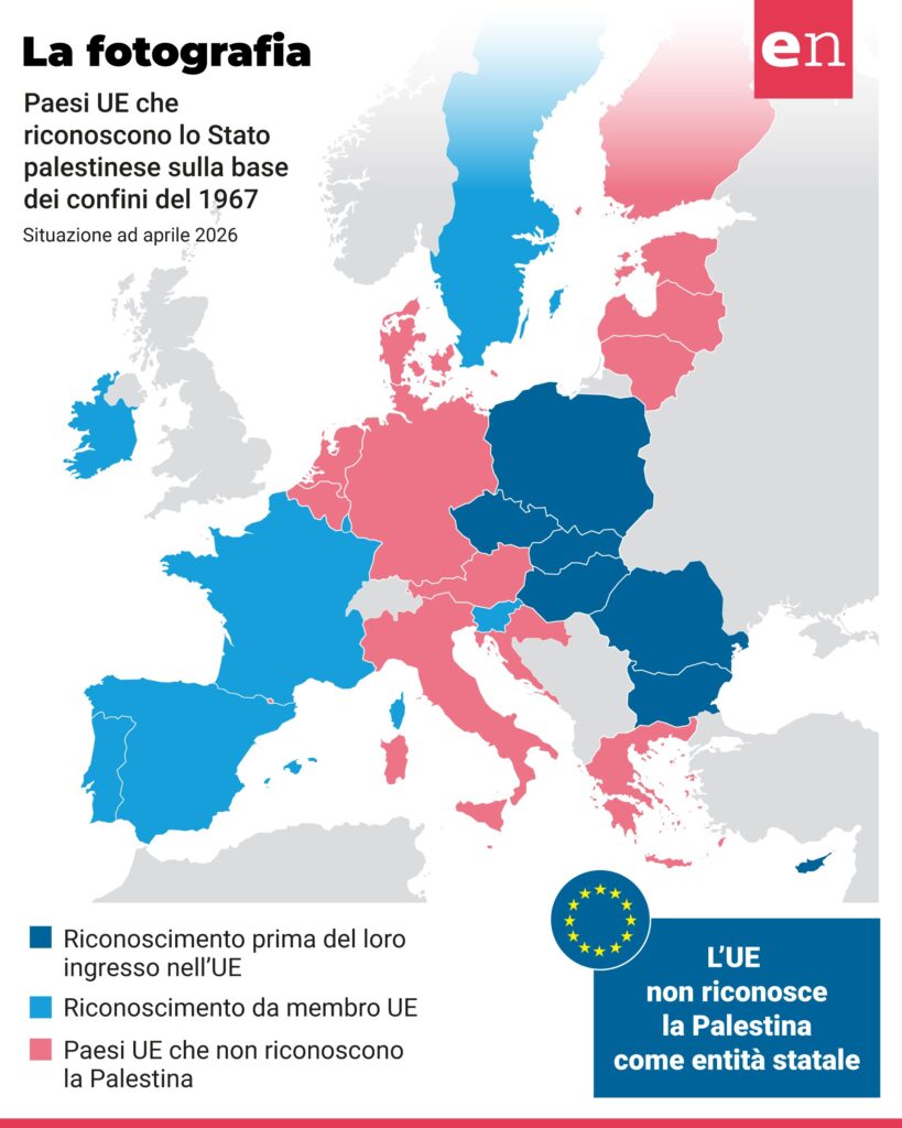 ![L'Alta rappresentante per la politica estera e di sicurezza dell'UE, Kaja Kallas, tra il primo ministro palestinese, Mohammad Mustafa (sinistra) e il ministro degli Esteri norvegese, Espen Barth Eide [Bruxelles, 20 aprile 2026]](https://www.eunews.it/wp-content/uploads/2026/04/kallas-palestina-750x375.png)