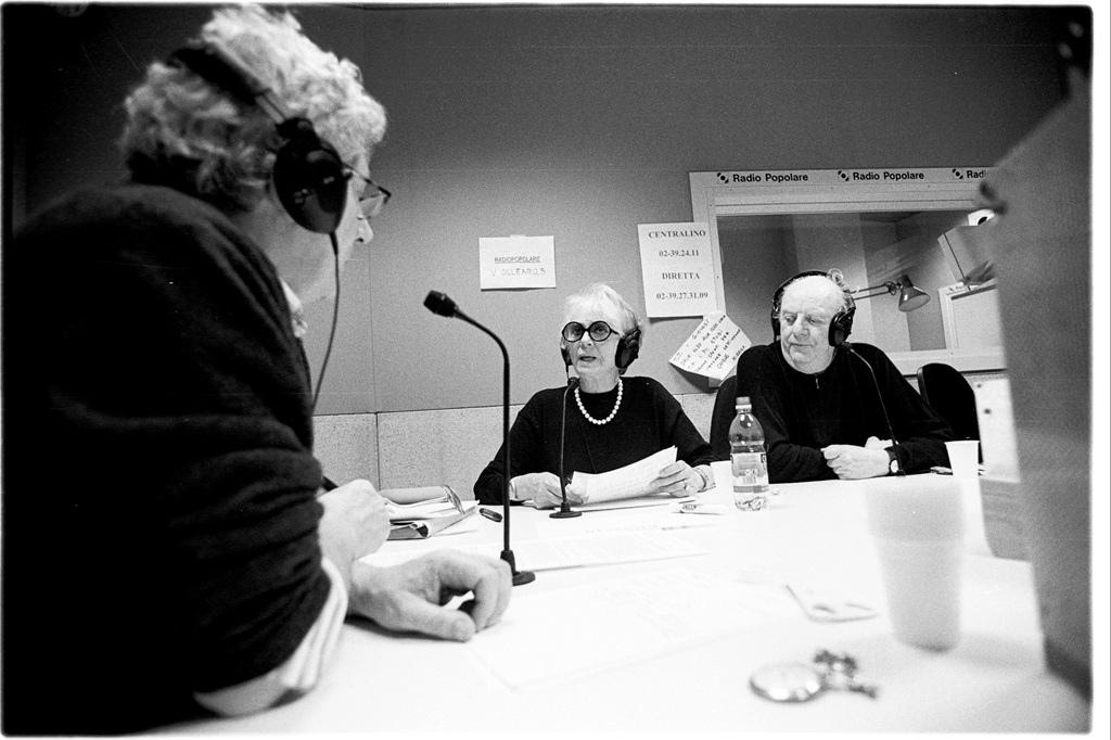 Microfono aperto sulla possibile candidatura di Dario Fo a sindaco di Milano, in onda dagli studi di Radio Popolare, con la presenza del premio Nobel e di Franca Rame. Foto e © di Matteo Bergamini manonegra@tiscalinet.it