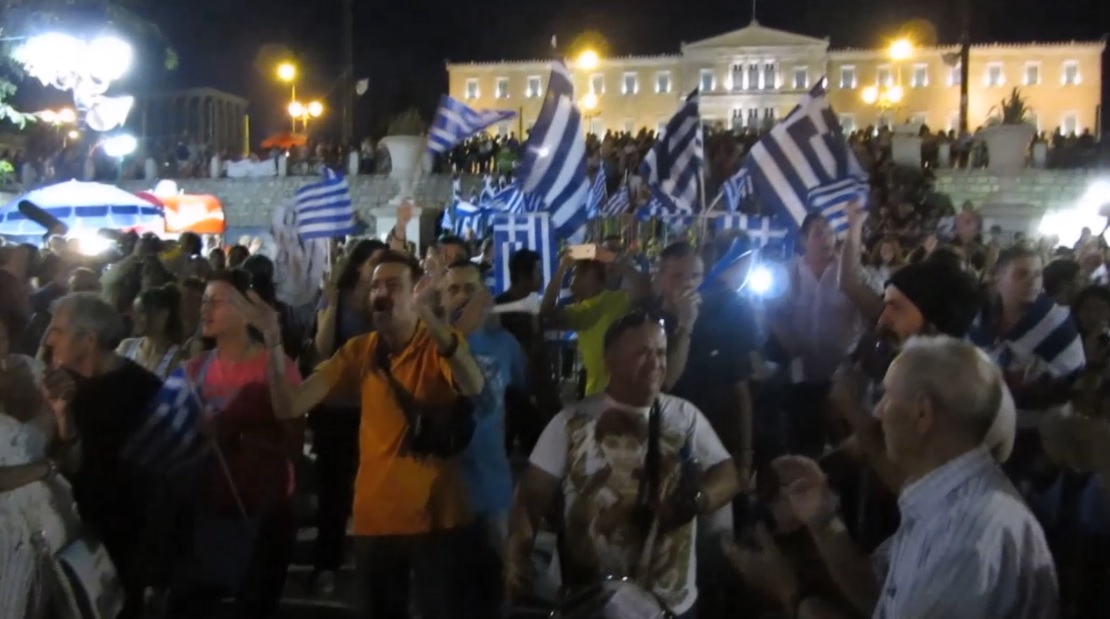 La gente fa festa in piazza Syntagma ad Atene per la vittoria del "NO" al referendum cantando "eee ooo parte...
