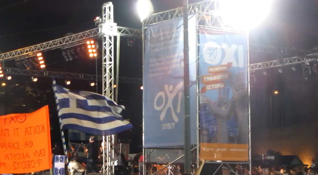 Atene divisa tra due manifestazioni per la fine della campagna referendaria in Grecia. OXI, grida una, NAI l'altra