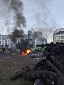 According to local media, some 1,000 tractors are parked symbolically in the European Quarter in Brussels, protesting against overly stringent EU policies and rising fuel prices. Also present was Coldiretti that explained to Eunews that it wanted to ask the EU for “more congruous rules that would allow us to work in a more stable manner, with lower costs and, above all, be more competitive in terms of production.” Protesters also tore down and burnt one of the five statutes dating back to 1871 that are at the center of Luxembourg Square, the one representing a steelworker, Beaufort, one of the main collaborators of the Belgian rail pioneer Joch Cockerill, whose statute is at the center of the art complex.
