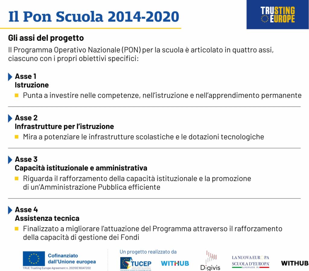Bruxelles – Istruzione, infrastrutture, capacità amministrativa e gestionale, assistenza. Questi i quattro assi attorno cui ruota il Programma operativo nazionale Scuola dell’Italia per il periodo 2014-2020. Un programma che ha permesso di intercettare 2,31 miliardi di euro di risorse comunitarie provenienti dalle politiche di coesione.